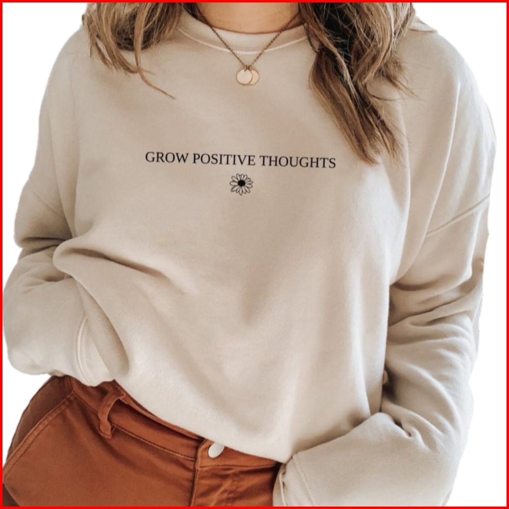 Jungji Sweaterpolos Basic Sweater Grow Positive Thoughts Size M-xxl Pria Wanita