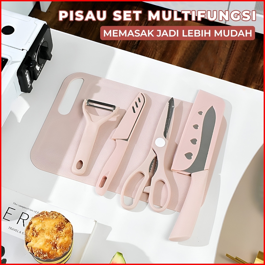Pisau Set Dengan Talenan Pisau Kupas Buah 3in1 Praktis