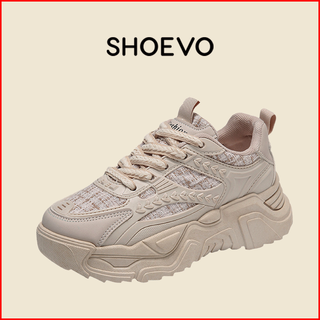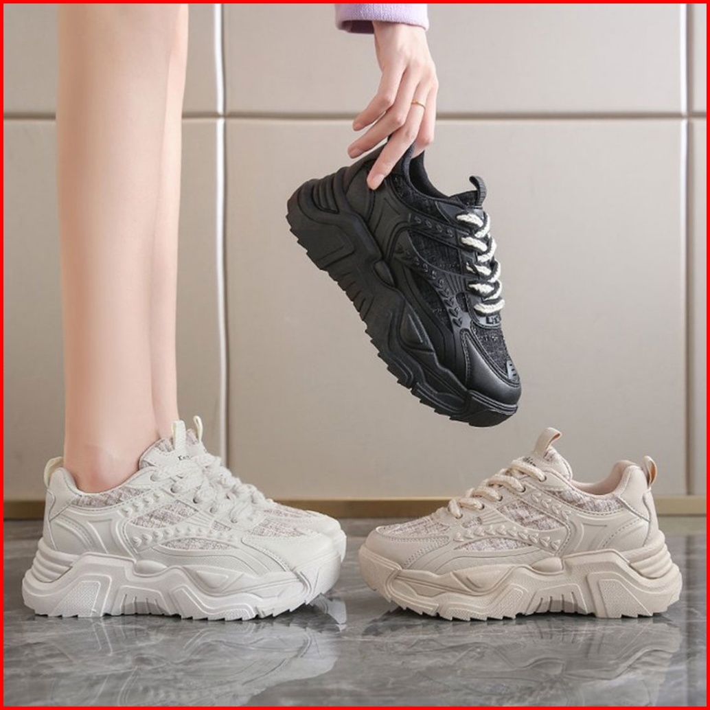 Shoevo Sneaker Wanita Korea Style Casual Dan Fashion Untuk Gaya Olahraga Hitam Putih Krem St023 Mia