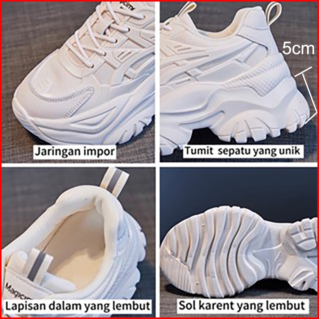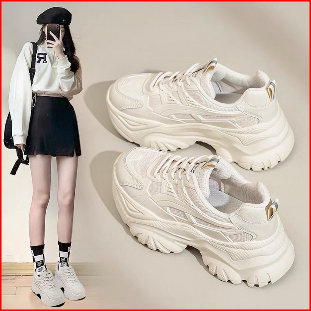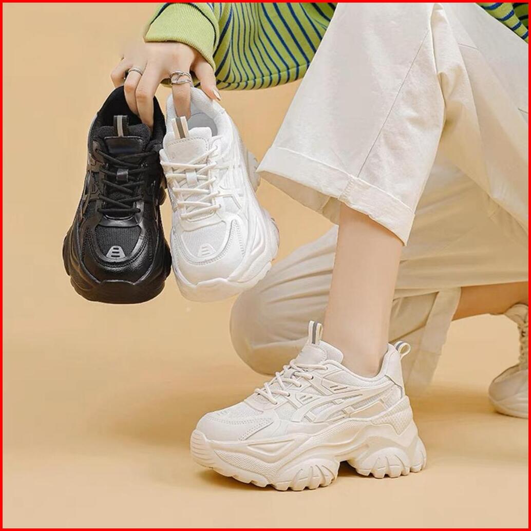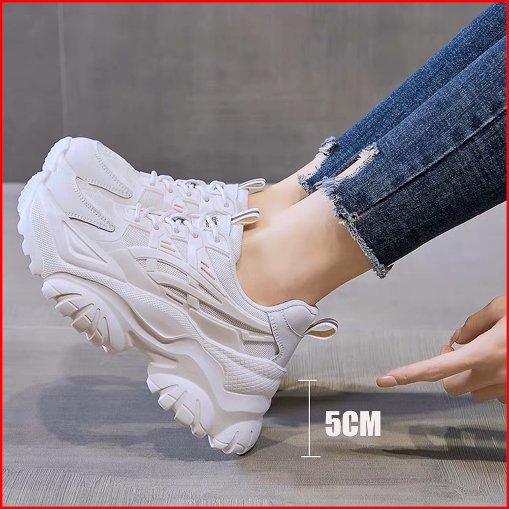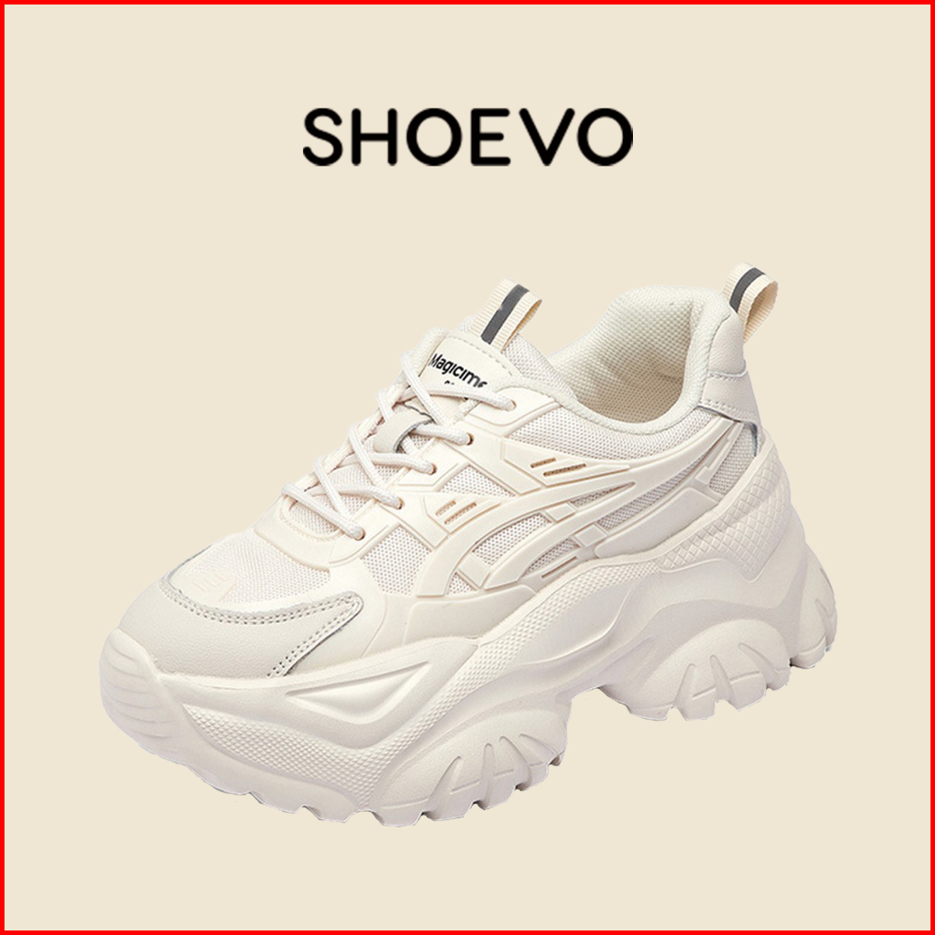 Shoevo Sneakers Wanita Woman Shoes Kasual Olahraga Sepatu Tinggi Tumit 5.3cm Hitam Putih Krem St040