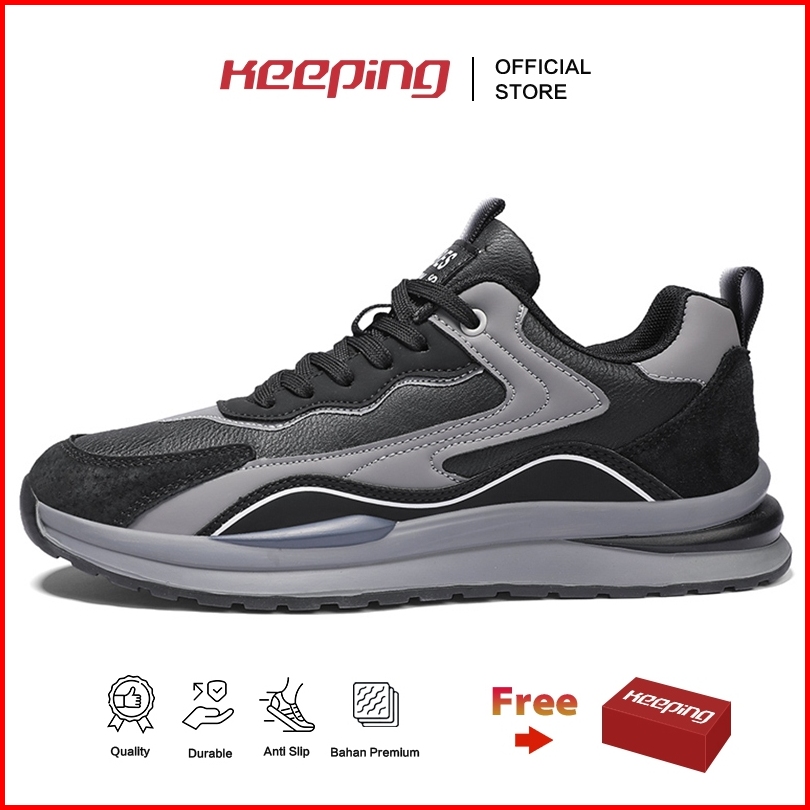 Keeping Sepatu Sneakers Pria Hitam Spatu Olahraga Kasual Kuliah Sepatu Sekolah Cowok Jalan Ksr708