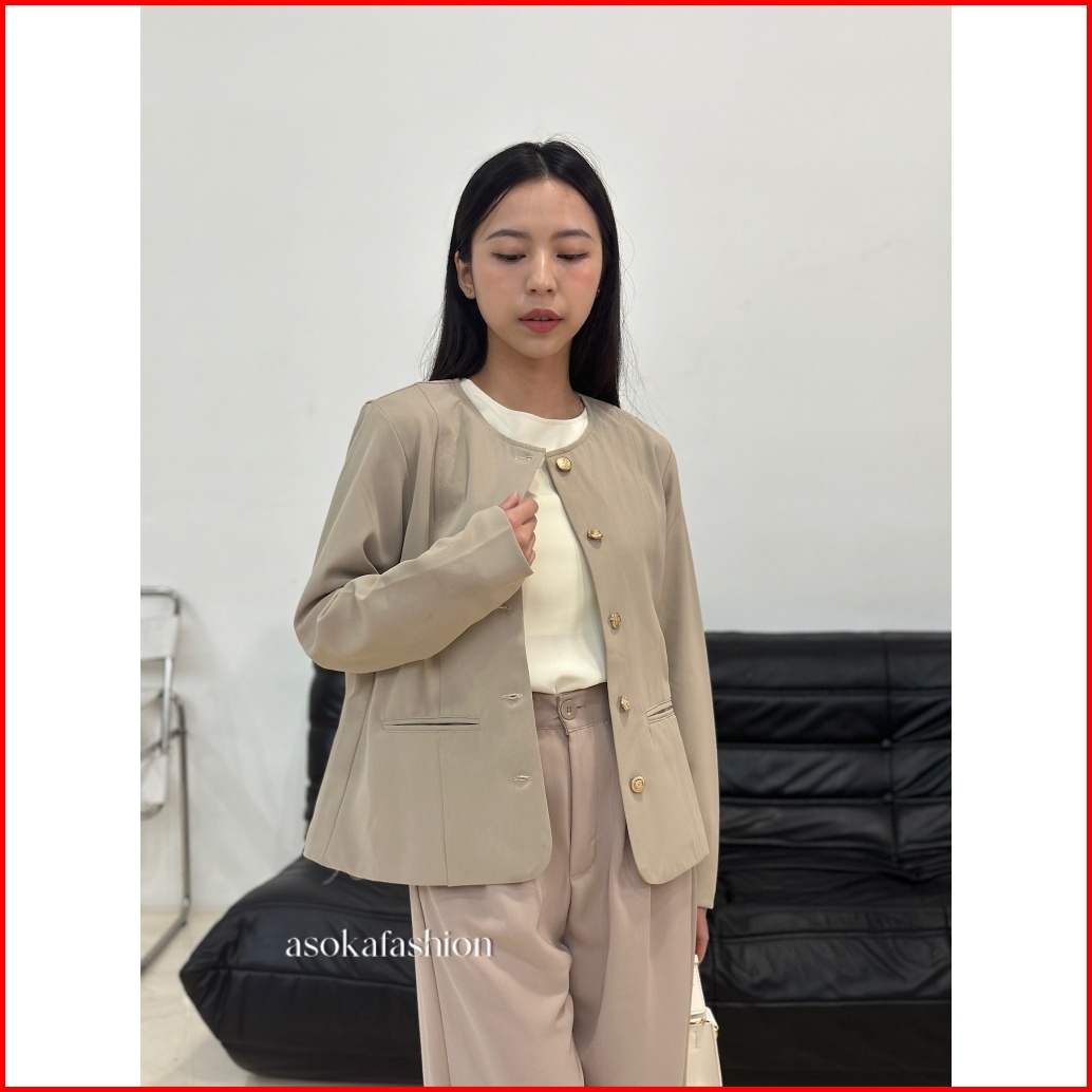 Asoka Chika Blazer 1360 - Atasan Wanita Outer Lengan Panjang - Korean Blazer Button Vintage Formal Anti Kusut