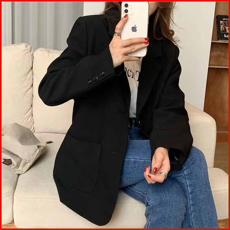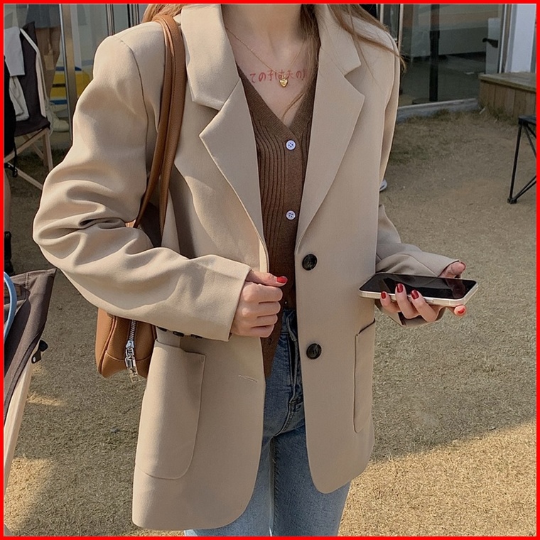 Blazer Lengan Panjang Wanita Korean Style Blezer Hitam Outer Polos