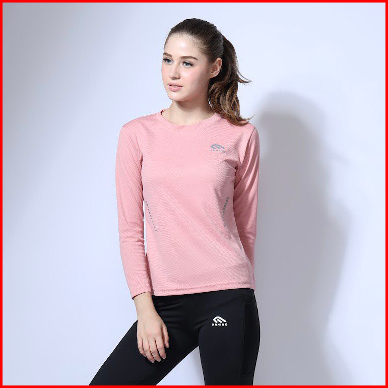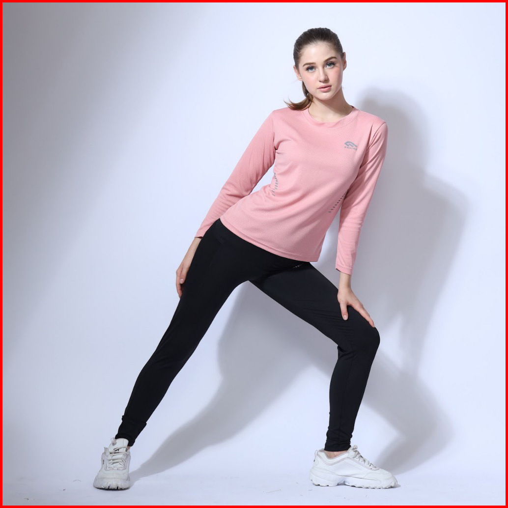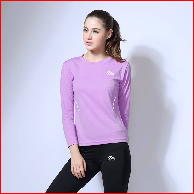 Maniak Baju Olahraga Wanita Lengan Panjang Kaos Running Muslimah Lari Gym Senam Bulutangkis Bmp L S