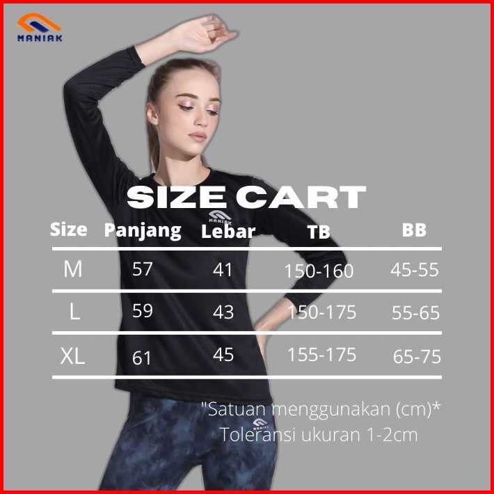 Maniak Kaos Lengan Panjang Wanita Sporty Bahan Poliester Untuk Olahraga Fitnes Zumba Badmintoon Pmw-l S