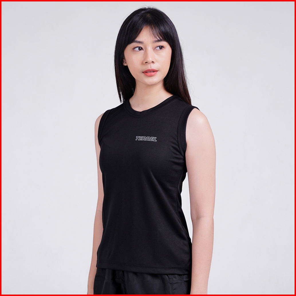Terrel Sportswear Basic Tanktop Black Women Sleeveless Baju Atasan Tanpa Lengan Kaos Olahraga Dry Fit Wanita Lari Runnin