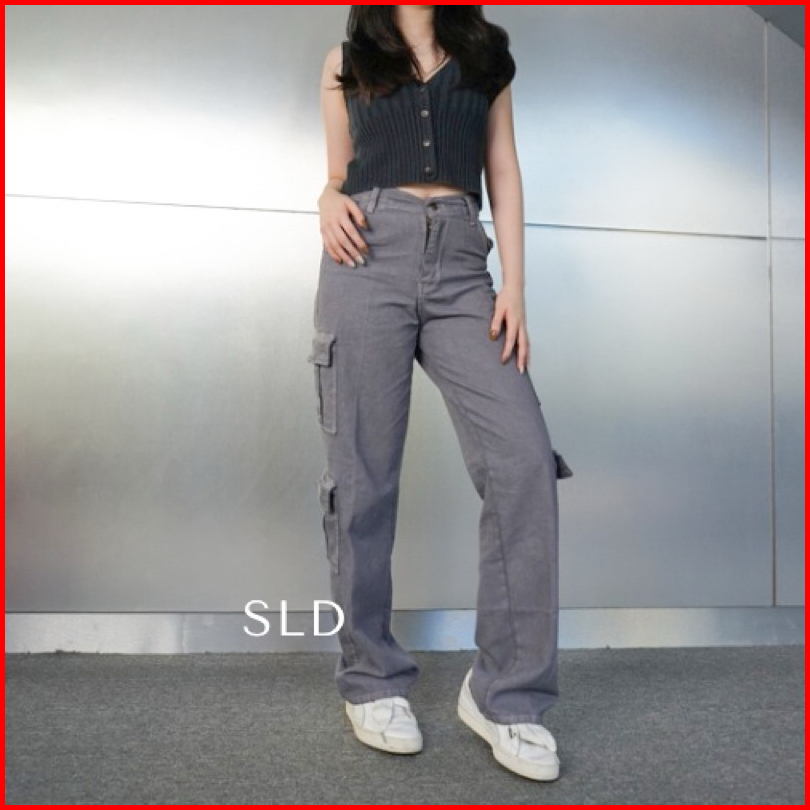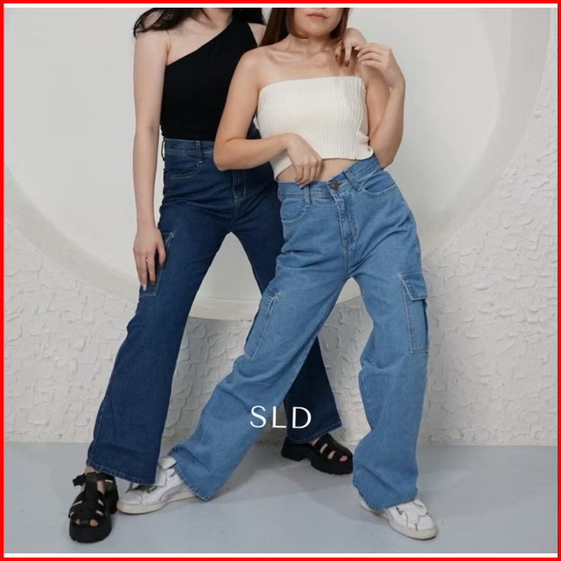 Sld - Zen Cargo Kantong 2 Ready Big Size 31-34 Overlong Loose Jeans Terbaru Cewe Bumi Highwaist