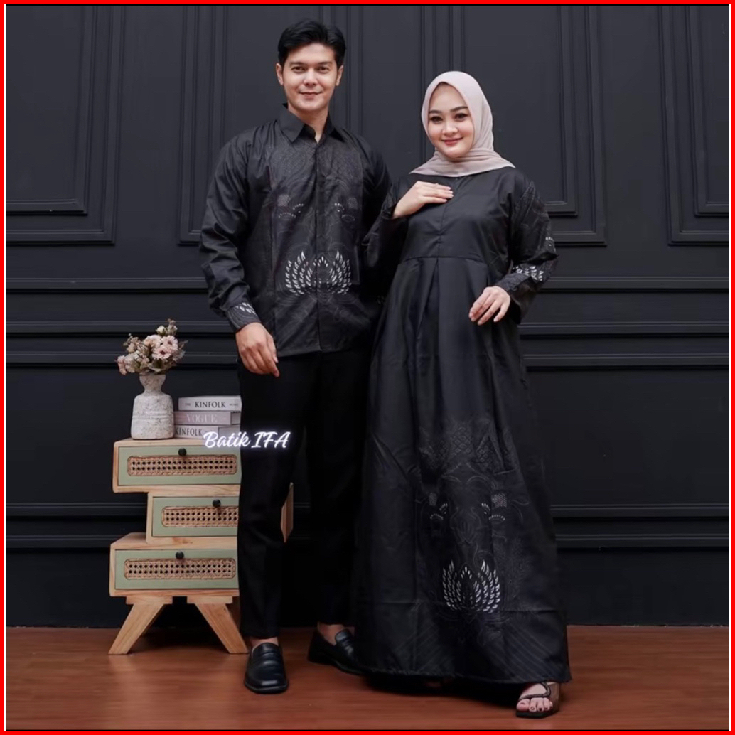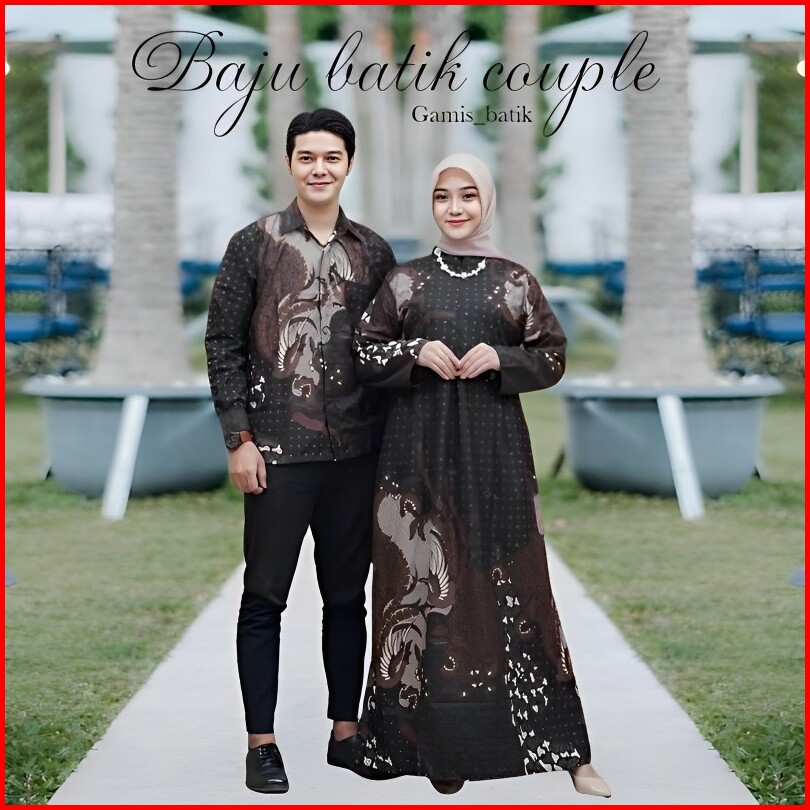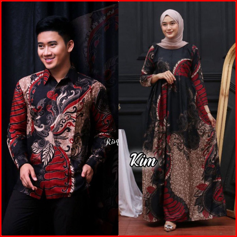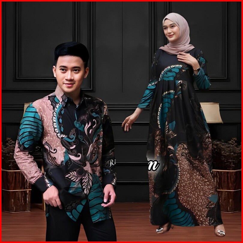 Baju Batik Couple Kemeja Panjang Gamis Maxi Tali Samping Motif Batik