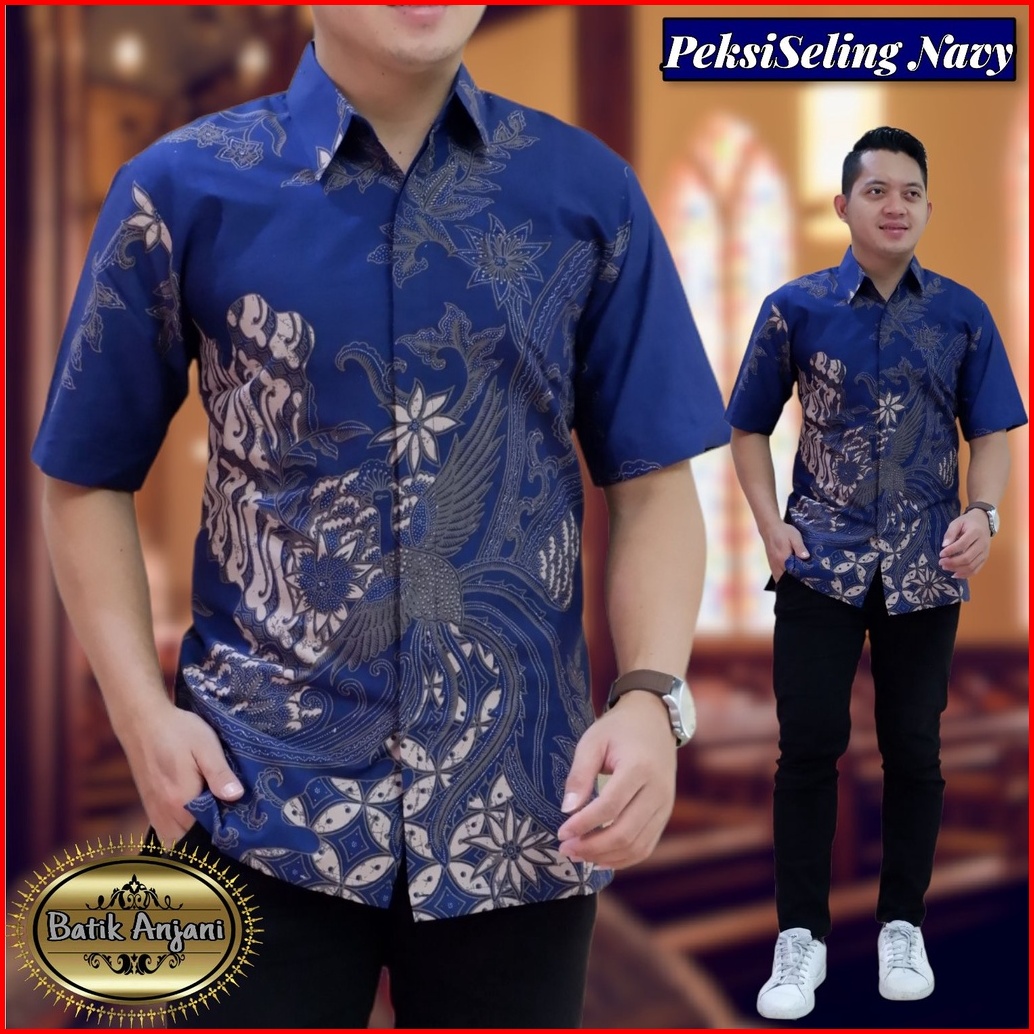 Baju Kemeja Batik Pria Solo Premium Modern Lengan Panjang Peksi Seling Navy Katun Full Furing Warna Biru Navy Baurekso N