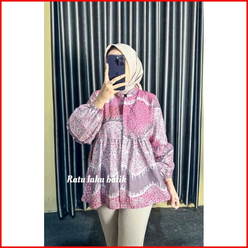 Tey-17 Batik Wanita Asj Sa Hrb026 Kenongo Kemeja Tosca Pendek