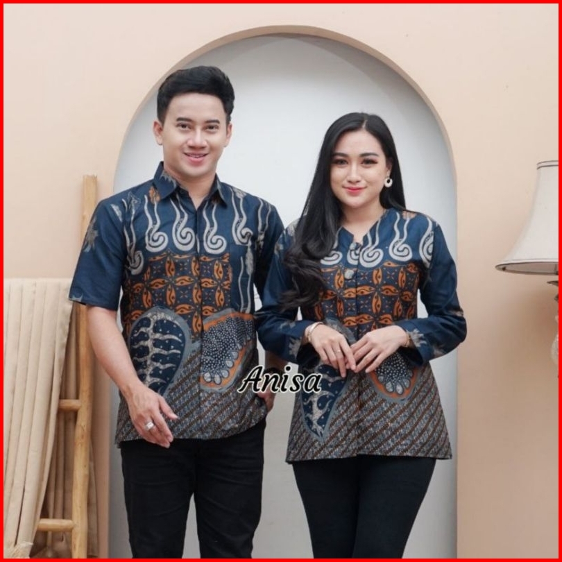 Maura Couple Batik Couple Sania Ruflle Ori Ndoro Jawi Baju Batik Wanita Modern Atasan Blouse Batik