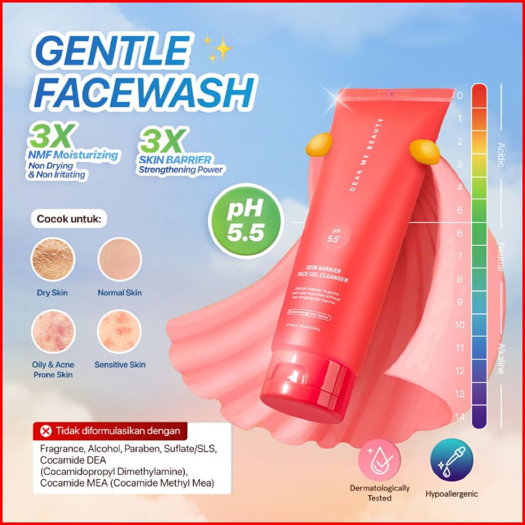 Dear Me Beauty Face Wash - Skin Barrier Face Gel Ceramide - Pembersih Wajah Gentle Membersihkan Minyak Kotoran Wajah Men