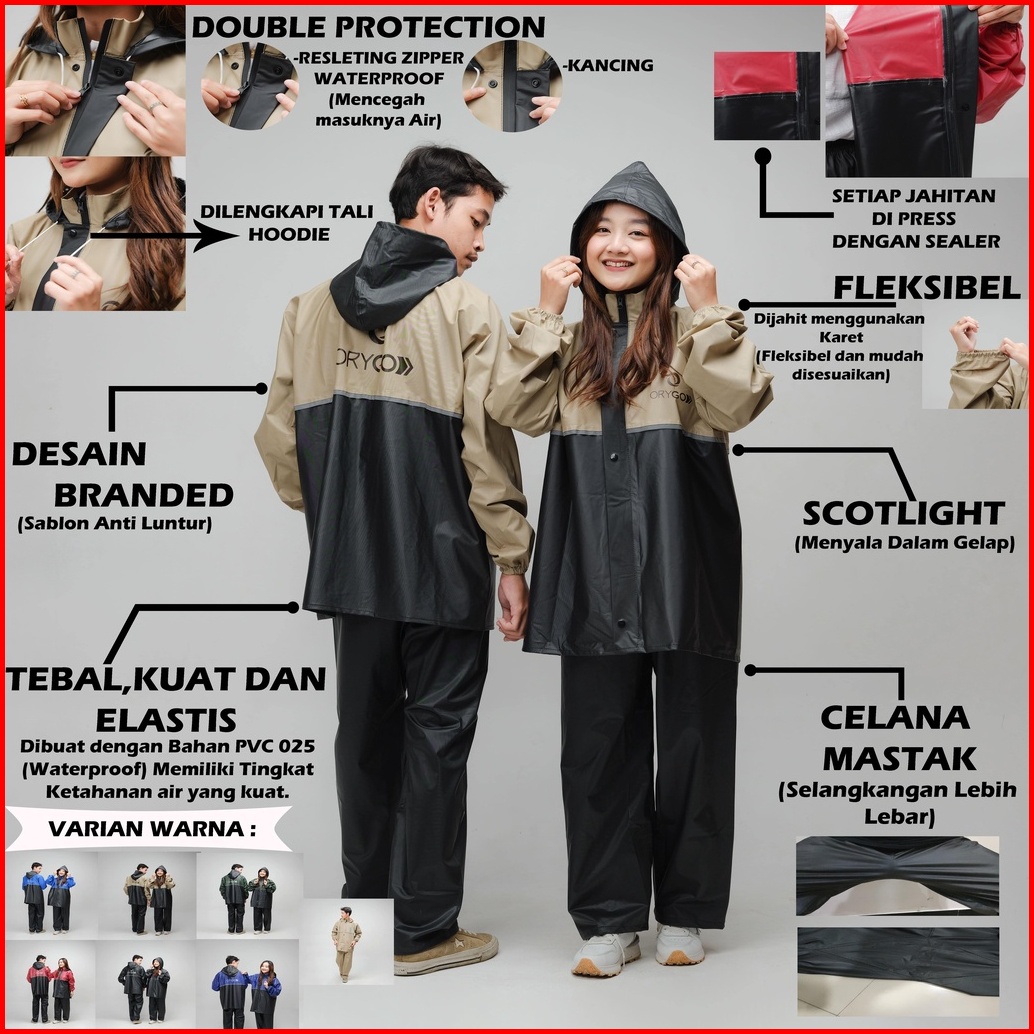 Jas Hujan Set Hoodie Premium Quality By Orygo Raincoat Pria Wanita Desain Trendy Anti Rembes.