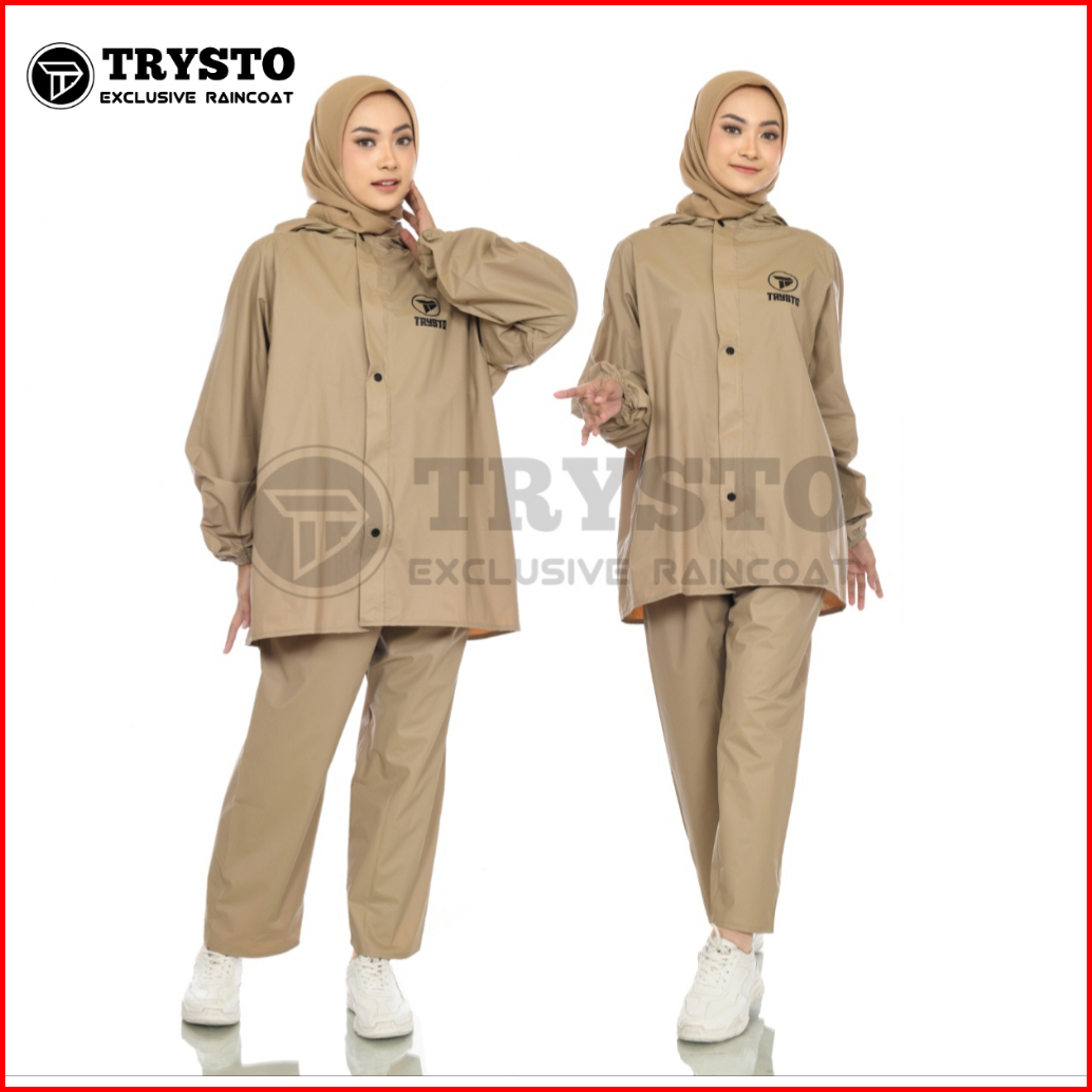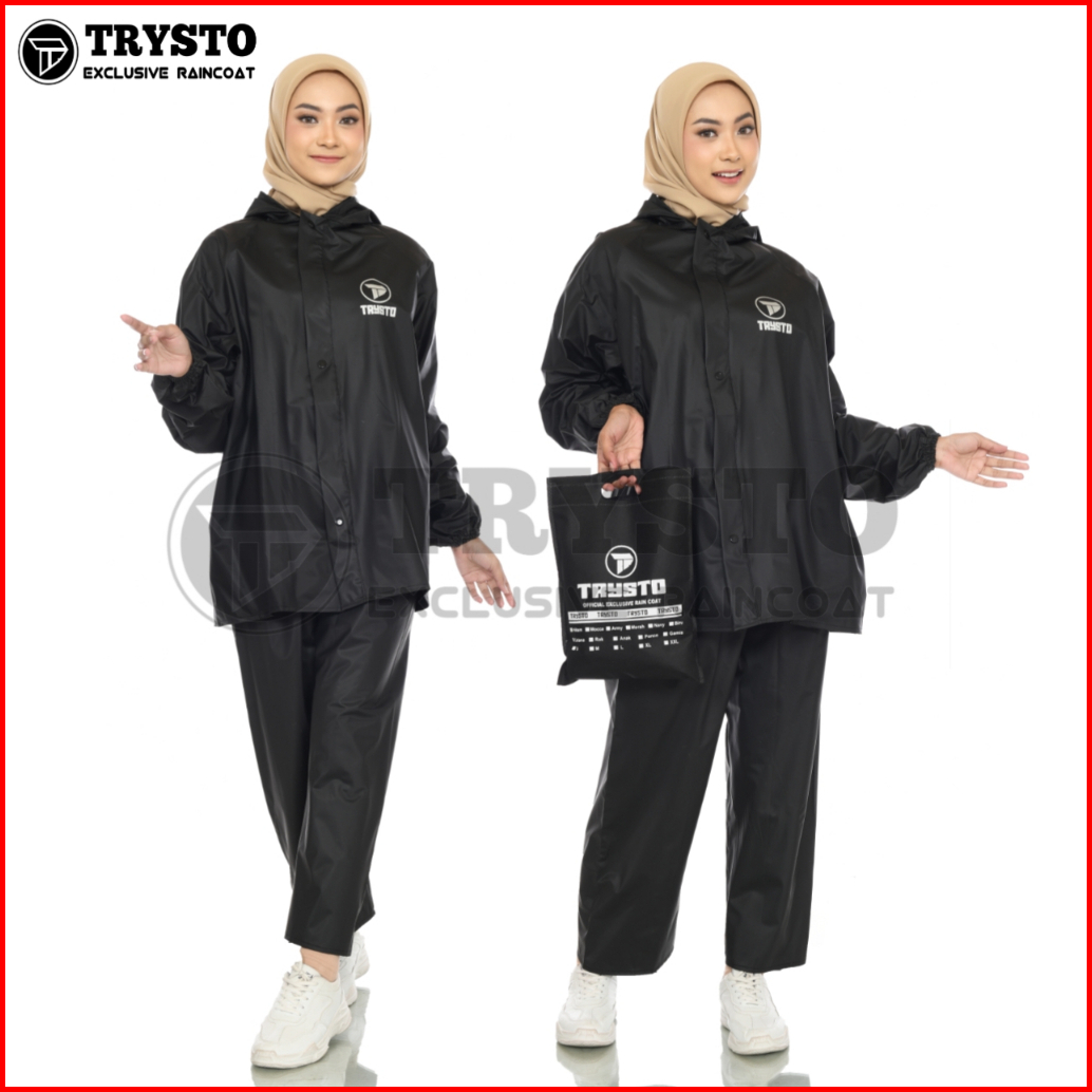 Jas Hujan Raincoat Setelan Pria Wanita Dewasa Bahan Kuat Tebal Elastis Anti Rembes Original By Trysto