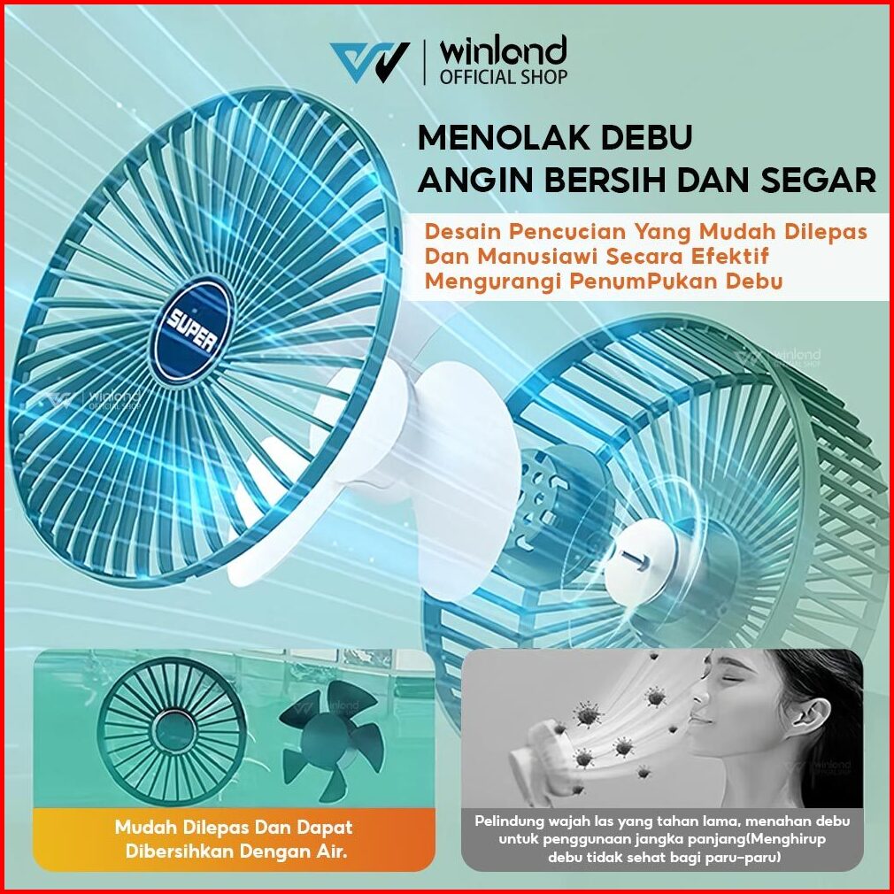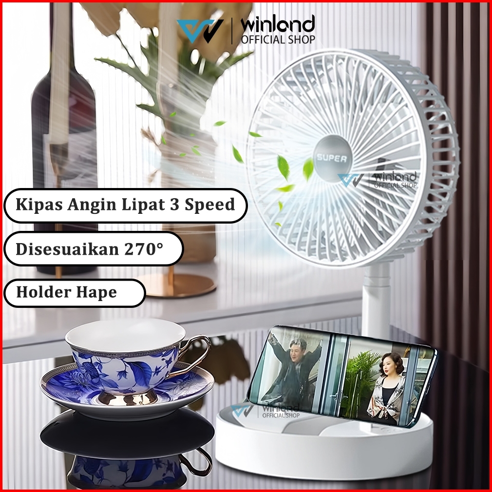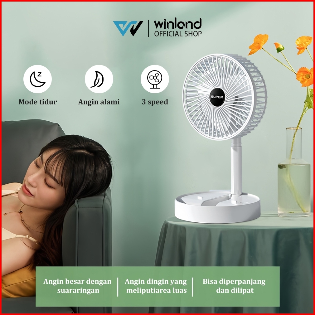 Winland Kipas Angin Lipat Kipas Angin Mini Portable Meja Wireless Rotasi 180 Portable Mini Fan Recharge