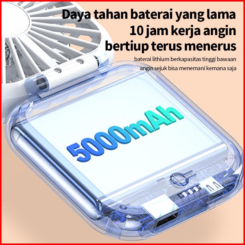 Garansi 1 Tahunnetpac Kipas Angin Kecil Portabel 5000 Mah Mini Desktop Yang Dapat Dilipat Kipas Leher Gantung Ultra