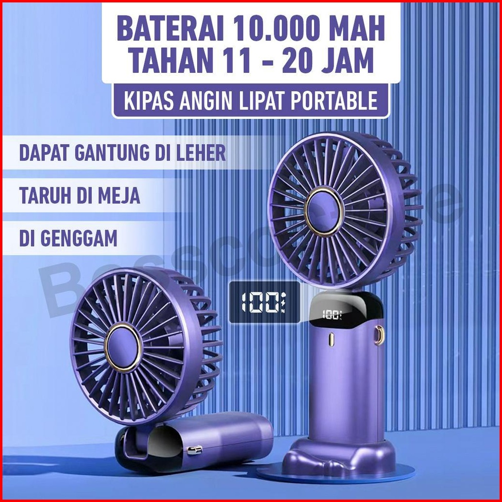 Kipas Angin Kecil Portable 10000 Mah Display Digital Lcd Gantung Di Leher Taruh Di Meja Dapat Dilipat Bisa Aromaterapi K