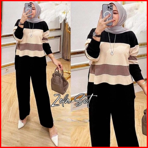 Terbaru 2024 Zola Set Rajut Premiun Setelan Rajut Wanita Premiun