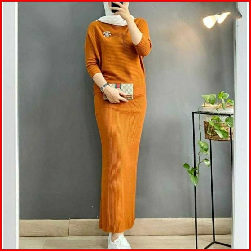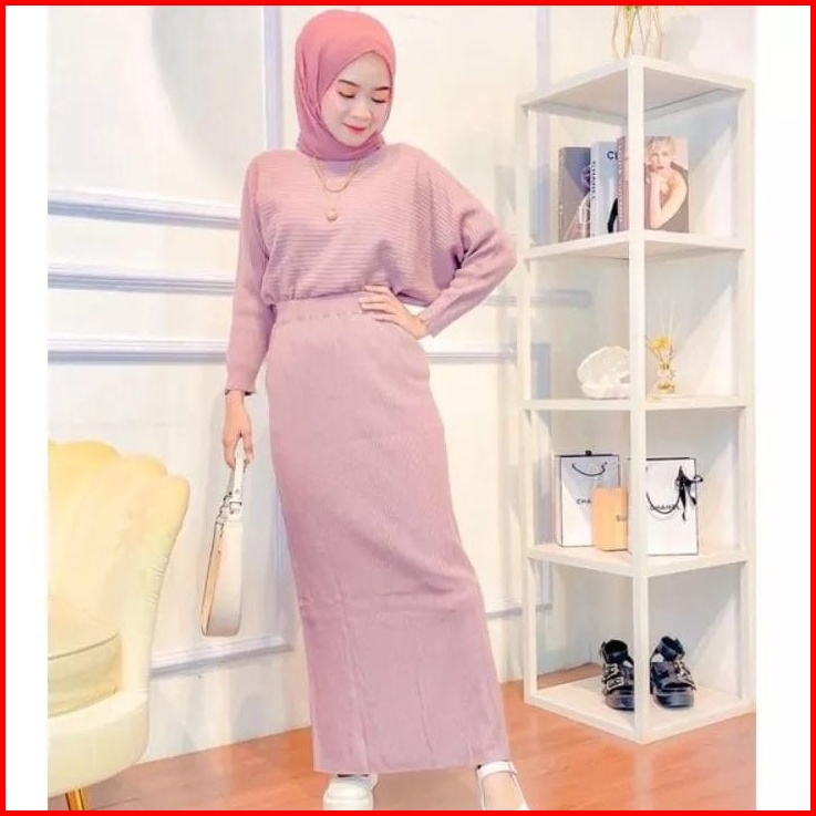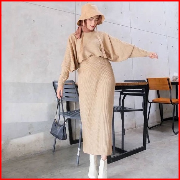 Stelan Batwing Rok Rajut Panjang One Set Outher Kalong Lasperal-termurah Atasan Rajut Wanita