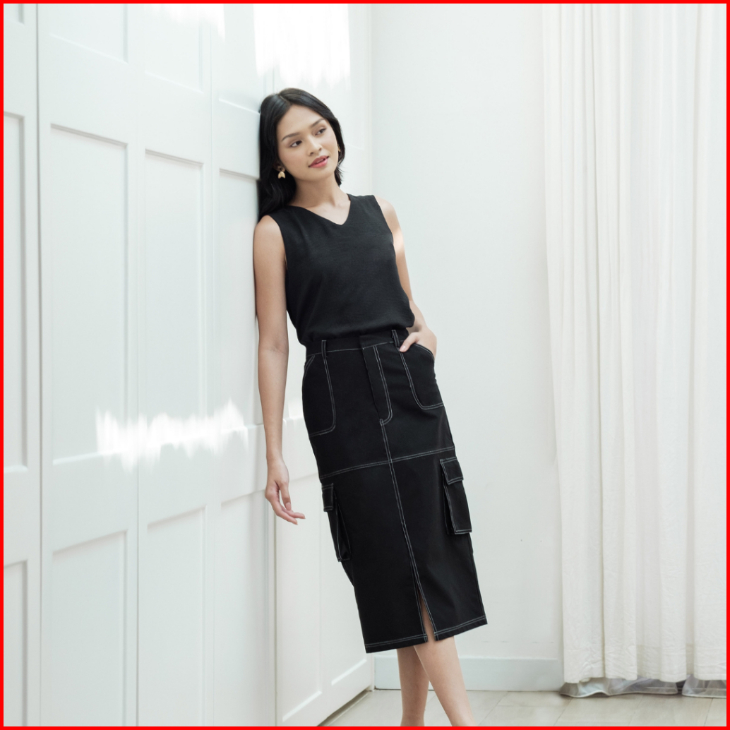 Momelca - Anjaly Midi Cargo Skirt Wanita