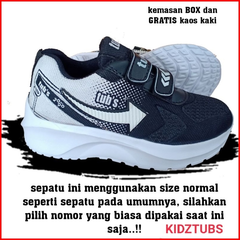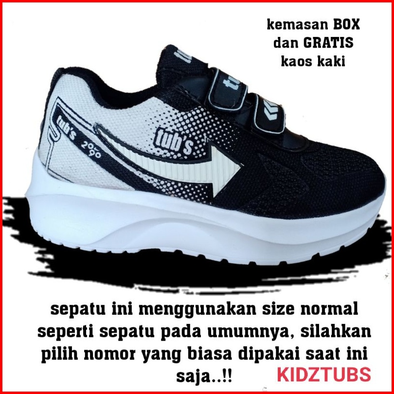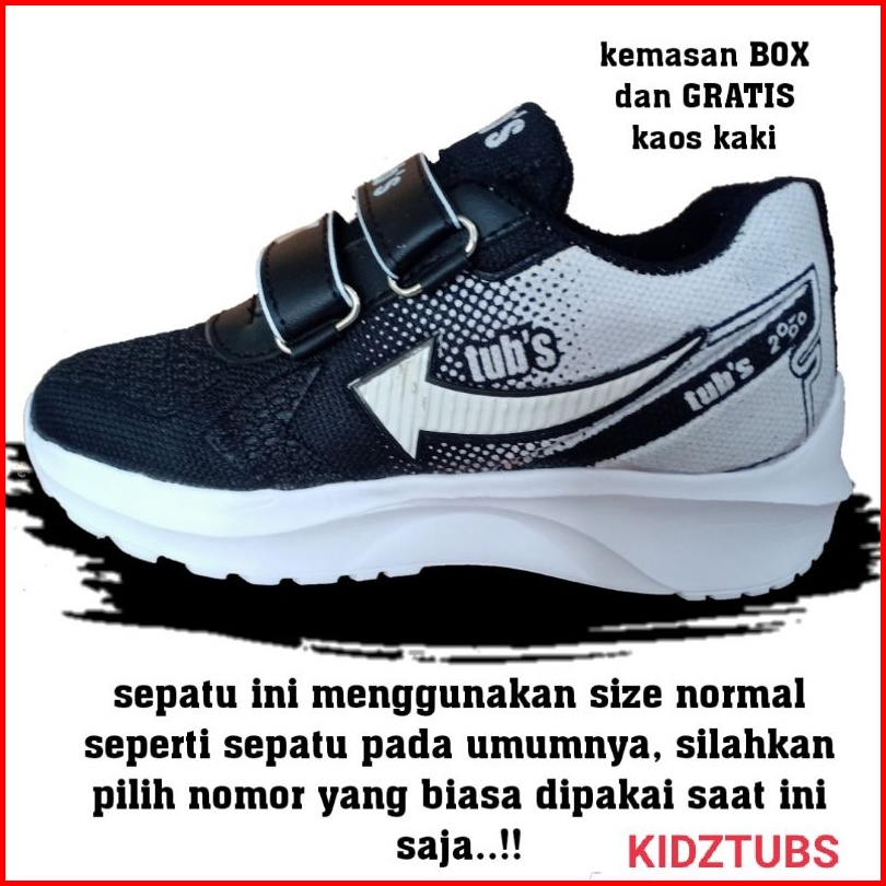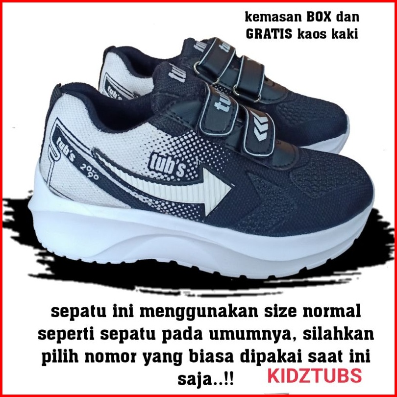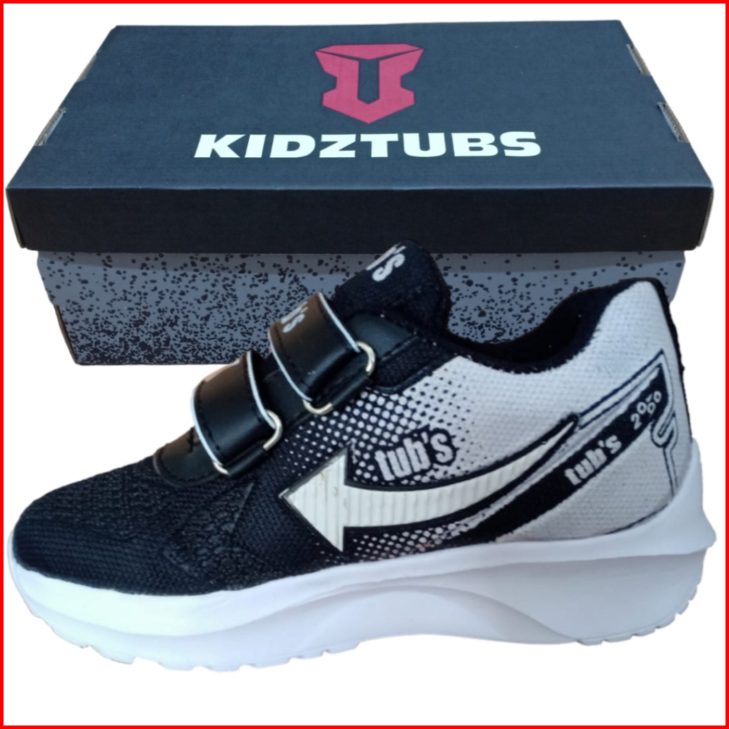 Kidztubs Sepatu Sekolah Anak Laki Laki Perempuan Warna Hitam Perekat Usia 6 -10 Tahun-kdz1452
