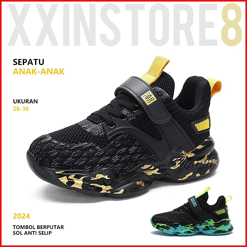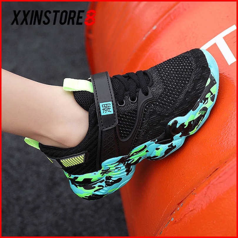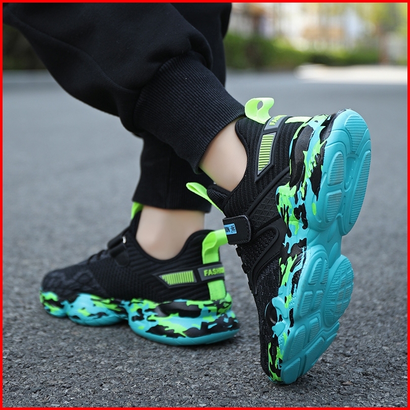 Sepatu Olahraga Anak-anak Sepatu Sneakers Bernapas Kampus Anak Laki-laki Jaring Bernapas Hijau