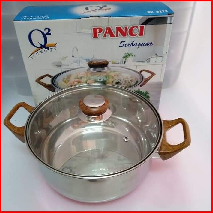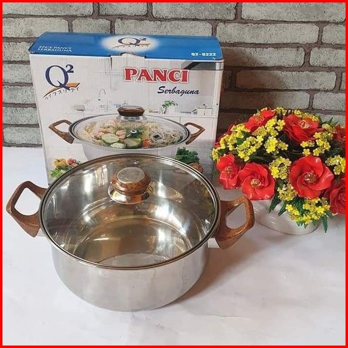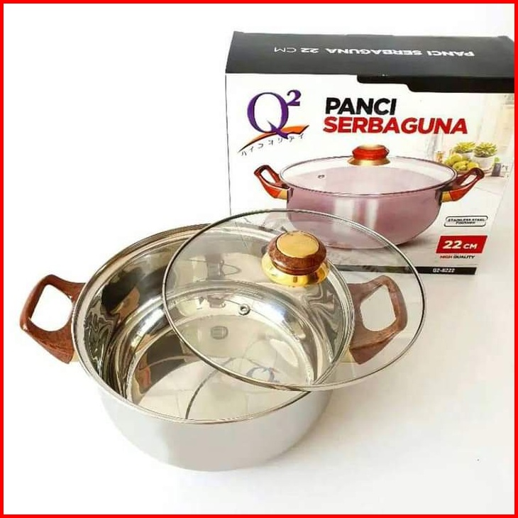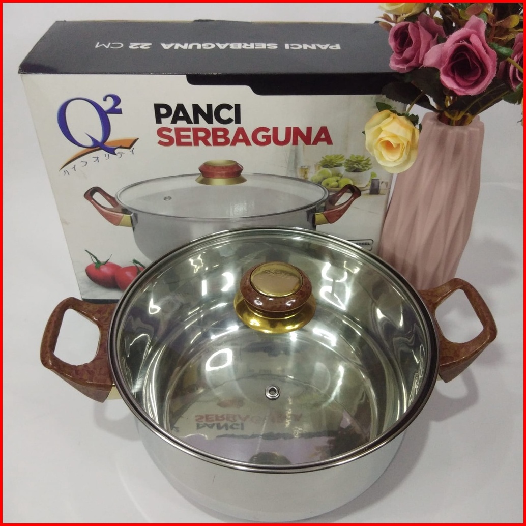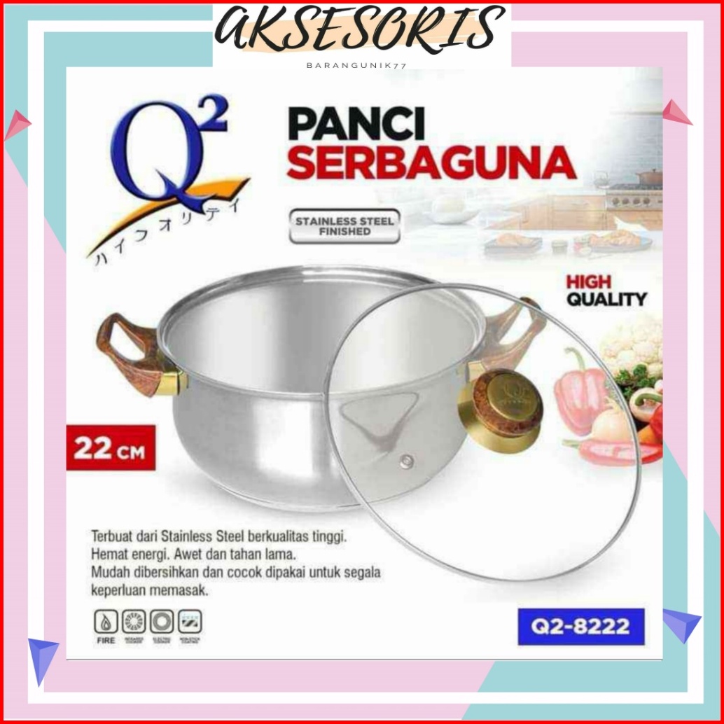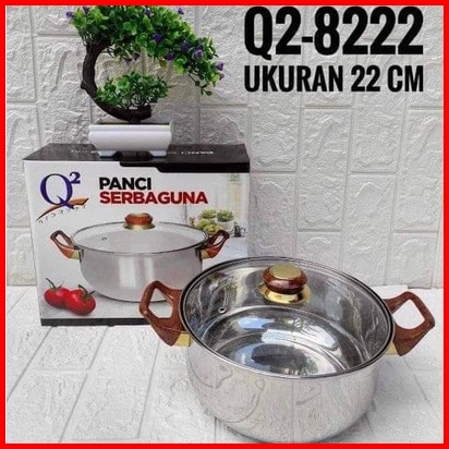Panci Kuah Serbaguna Q2 8222 Tutup Kaca Stainless Q2-8222 Panci Kuwah Q2 22cm Panci Sop 22cm Q2 8222 Q2-8222