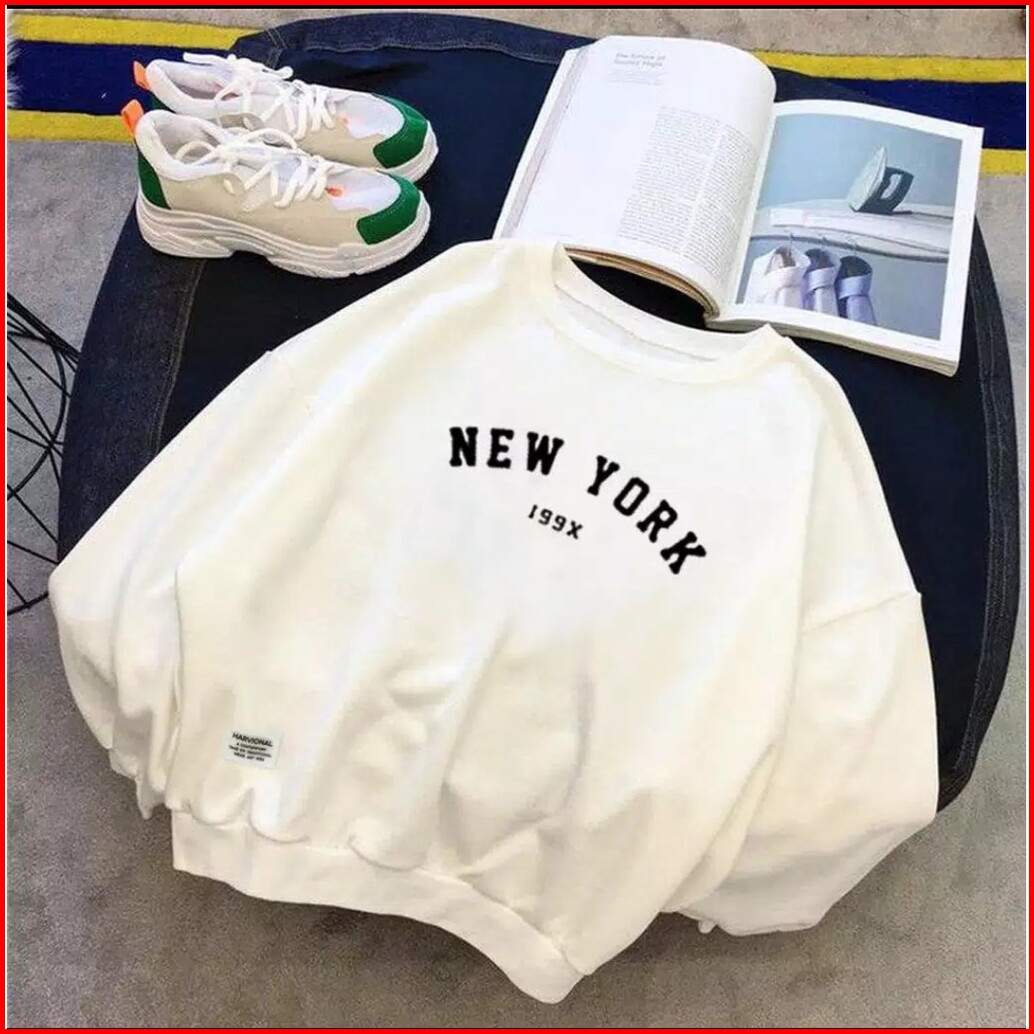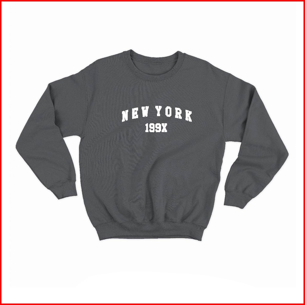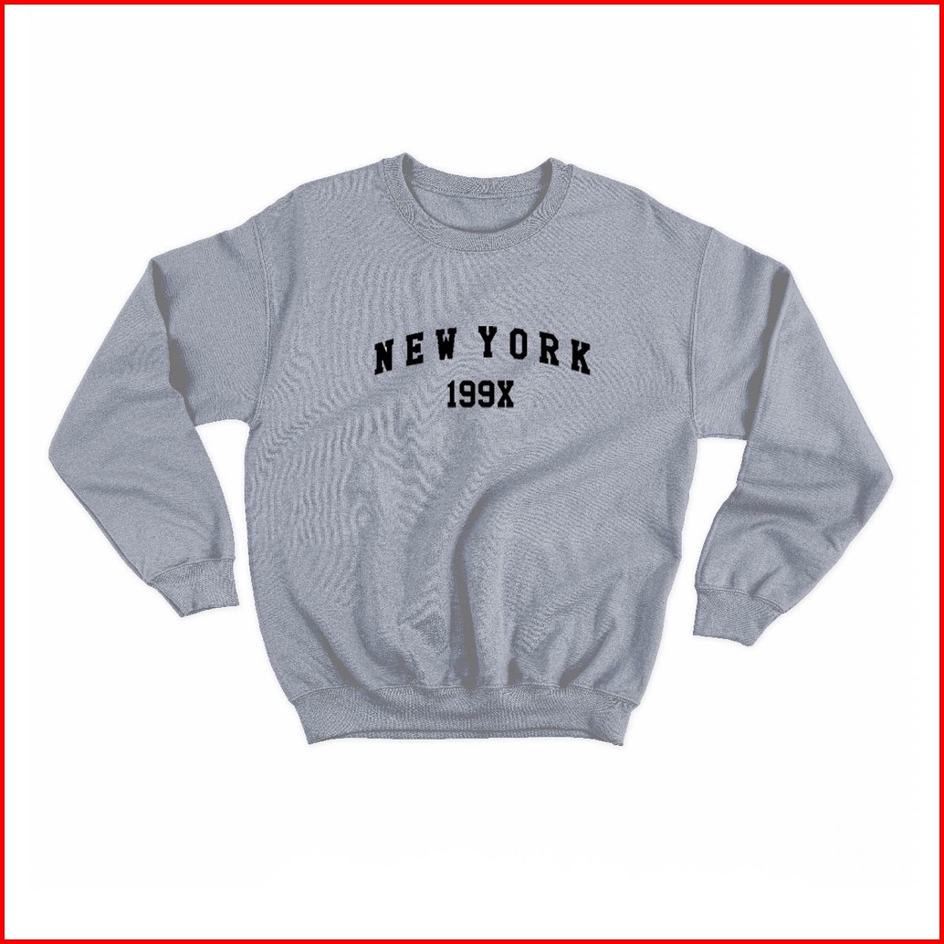 D.wshop Sweater Basic Sablon New York 199x Size M-xxl Unisex Pria Wanita