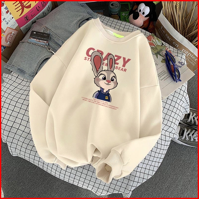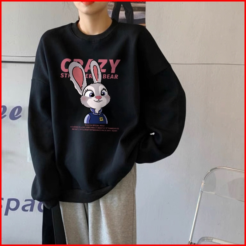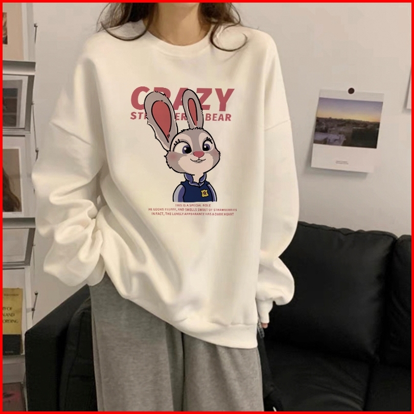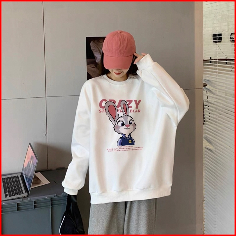 Forteid Sweater Lengan Panjang Oversized Street Style Korean Style Switer Wanita Oversize Kaos Pencetakan Wanita Kelinci