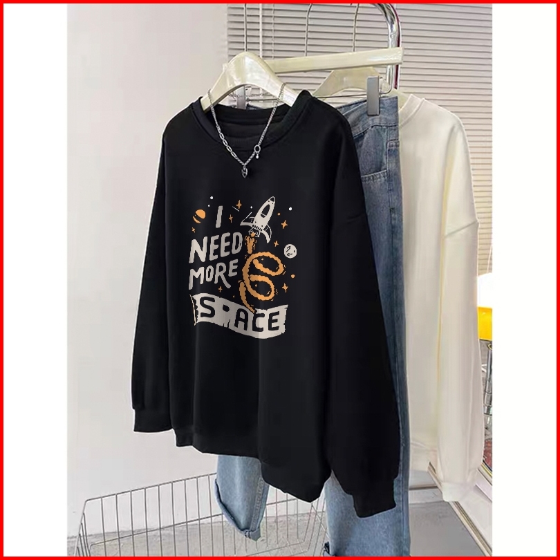 Forteid A1065 Sweater Graffiti Huruf Sweater Hitam Panjang Muda Basic Round Neck Sweater Oversized Round Neck Ala Korea
