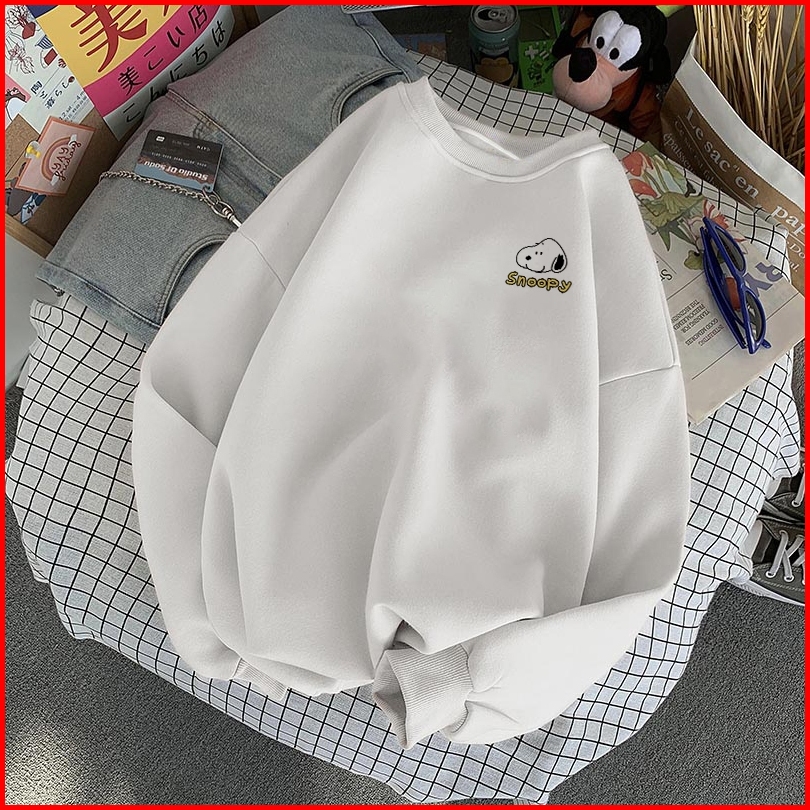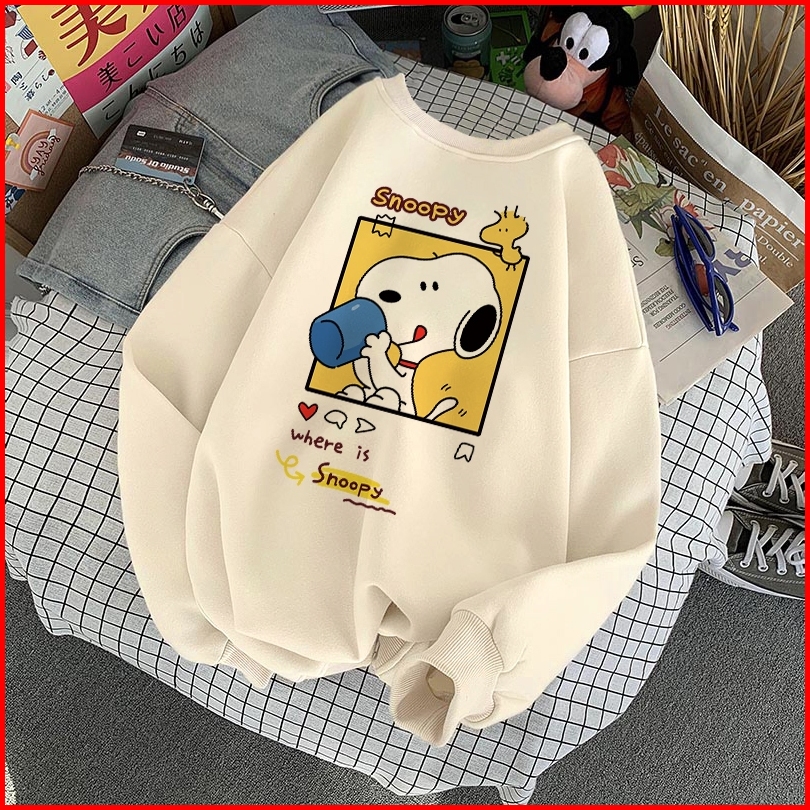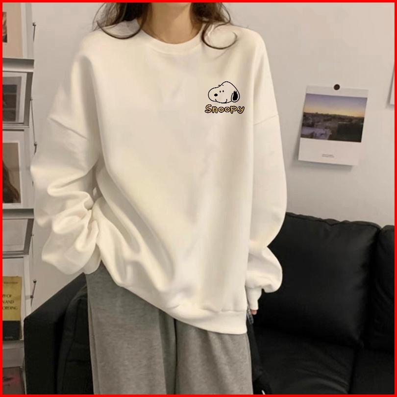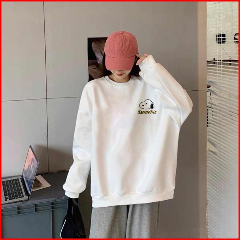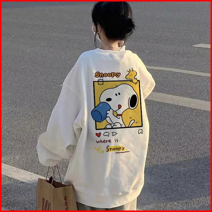 Forteid.print Sweater Oversize Wanita Snoopy Pola Sweater Hitam Kaos Oversize Baggy Panjang Wanita Retro Korean Style Sw
