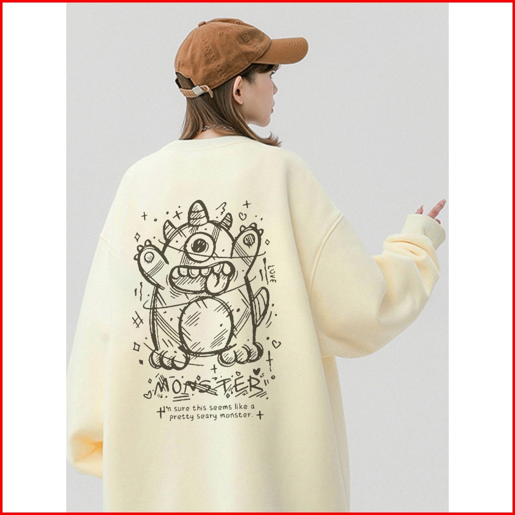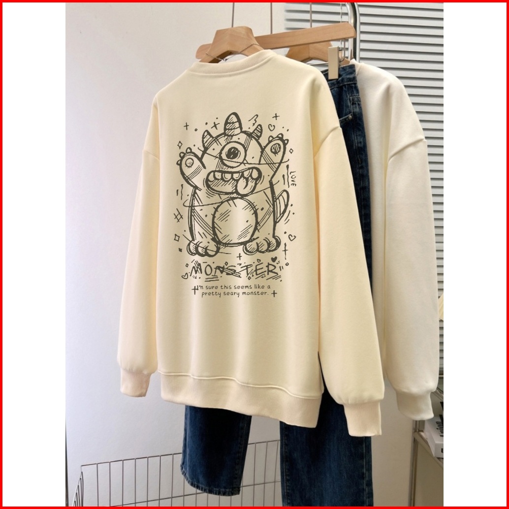 Forteid Sweater Lengan Panjang Oversized Street Style Korean Style Switer Wanita Oversize Kaos Cetakan Unicorn Korean St