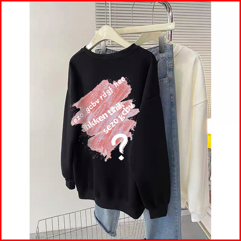 Gb05 A0566 Forteid.print Sweater Lengan Panjang Cartoon Pink Doodle Question Mark Printing Korean Style Sweater Korean S