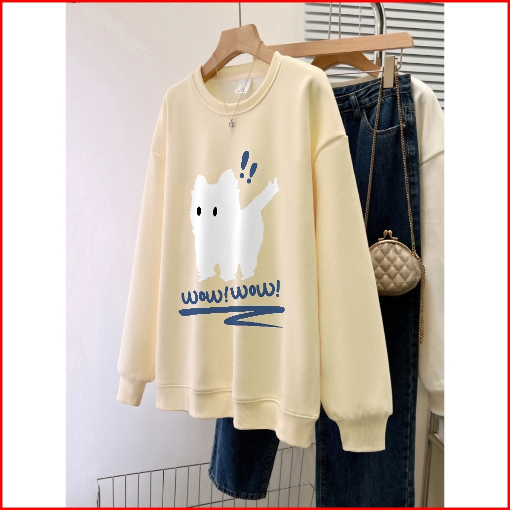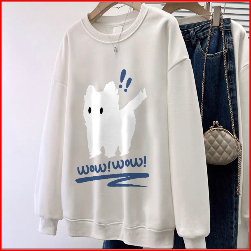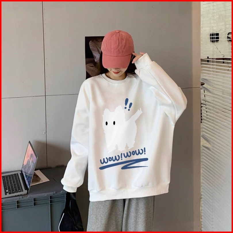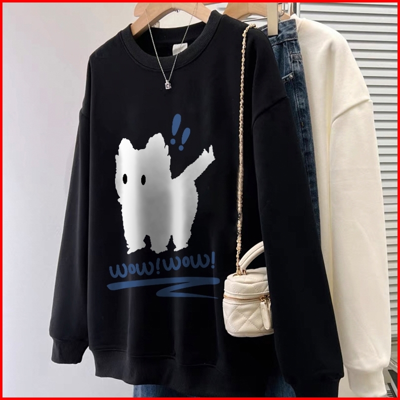 Forteid Cetakan Kucing Lucu Switer Wanita Oversize Kaos Pola Merek Trendi Korean Style Sweater Oversize Crewneck Wanita