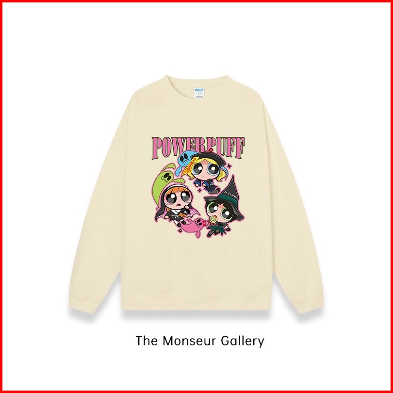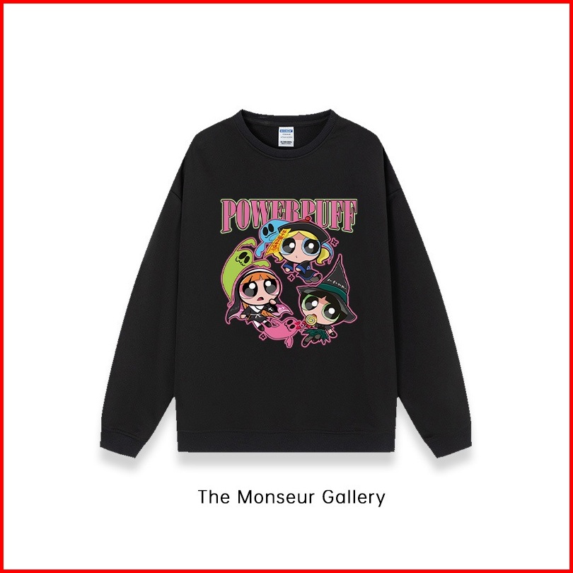 The Monseur Gallery Switer Wanita Oversize The Powerpuff Girls Style Sweater Oversize Crewneck Sweater Hitam