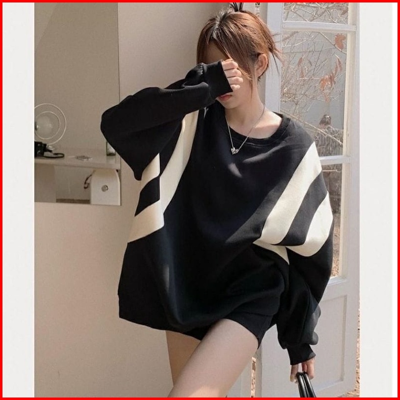 Vallina - Lines C Basic Oversized Sweater Premium Outerwear Crewneck Remaja Wanita Korean Style