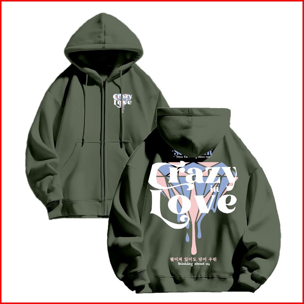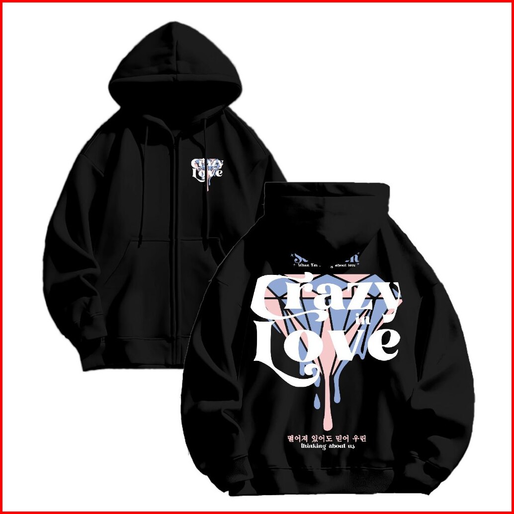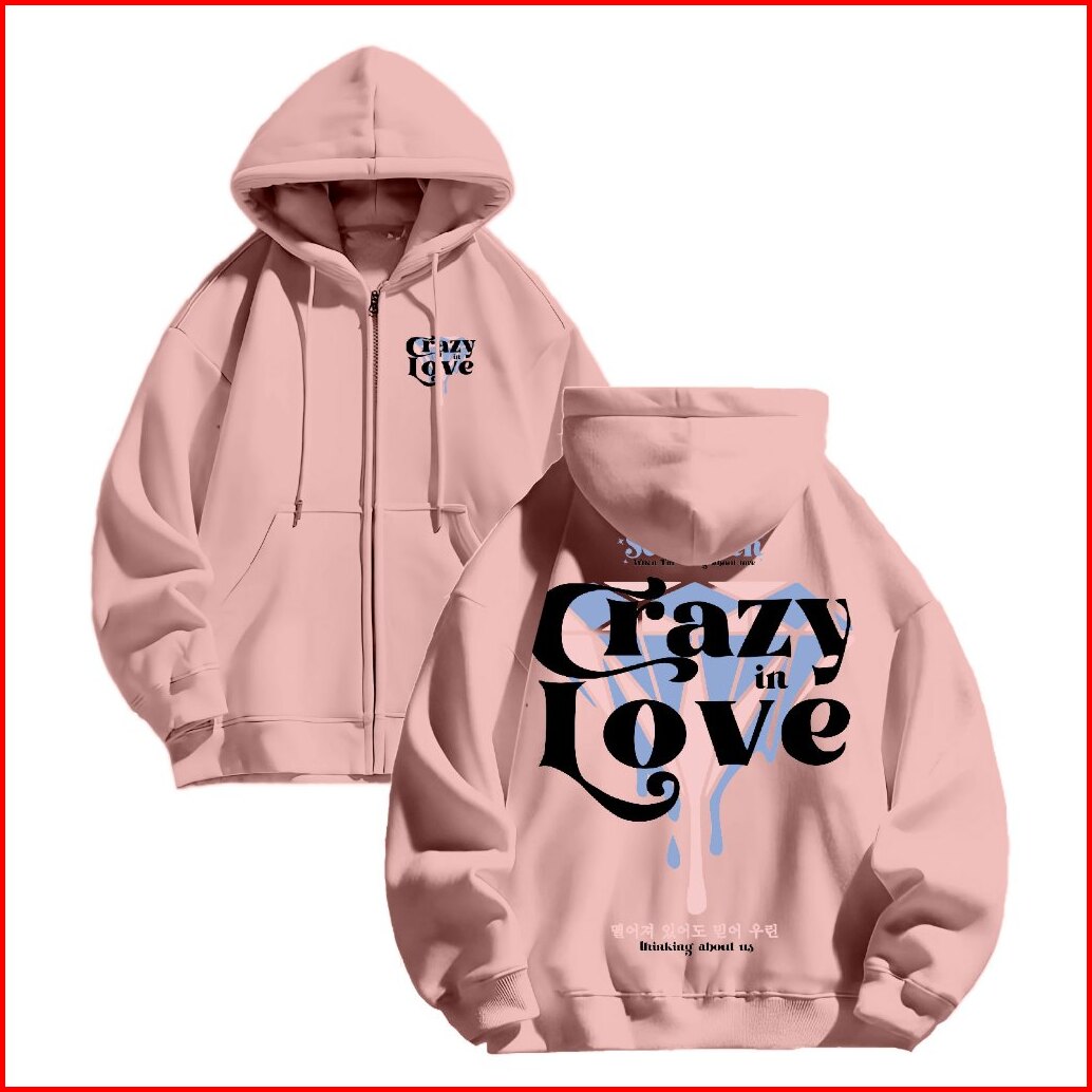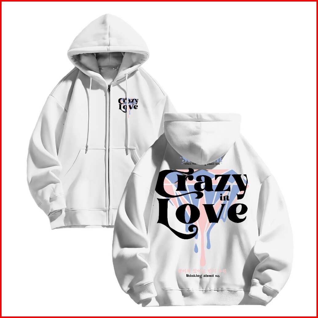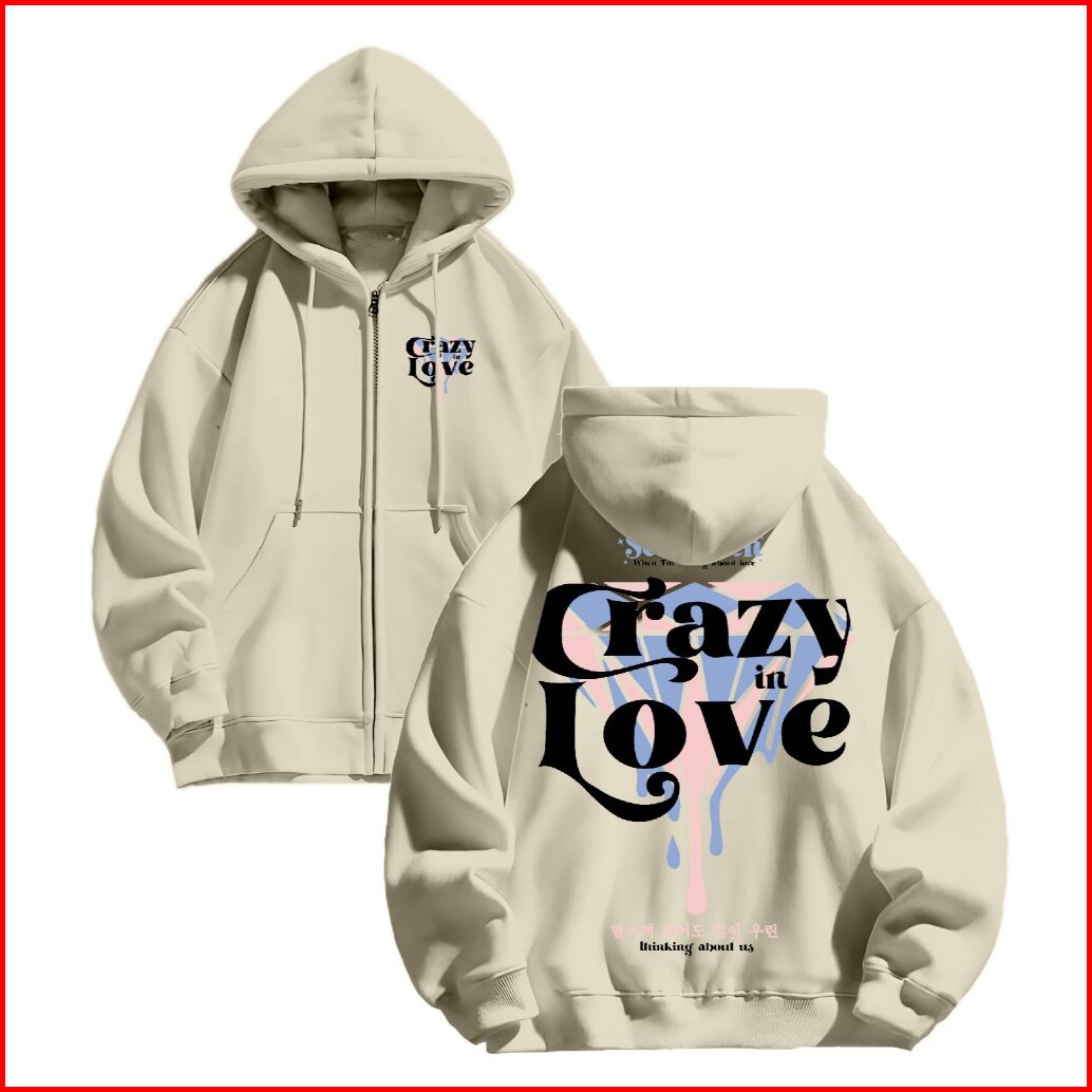 Bunz Hoodie Zipper Jaket Crazy In Love Sablon Dtf Size M-xxl Unisex Pria Wanita