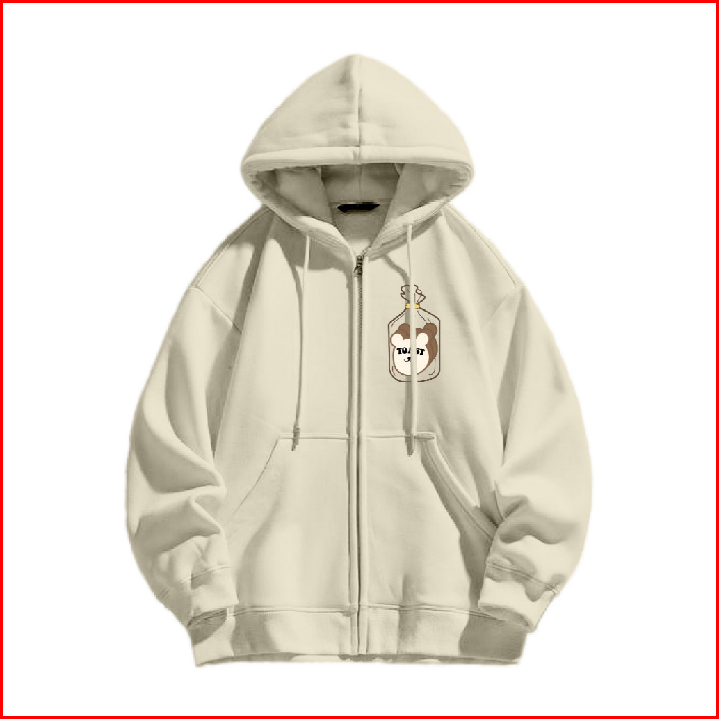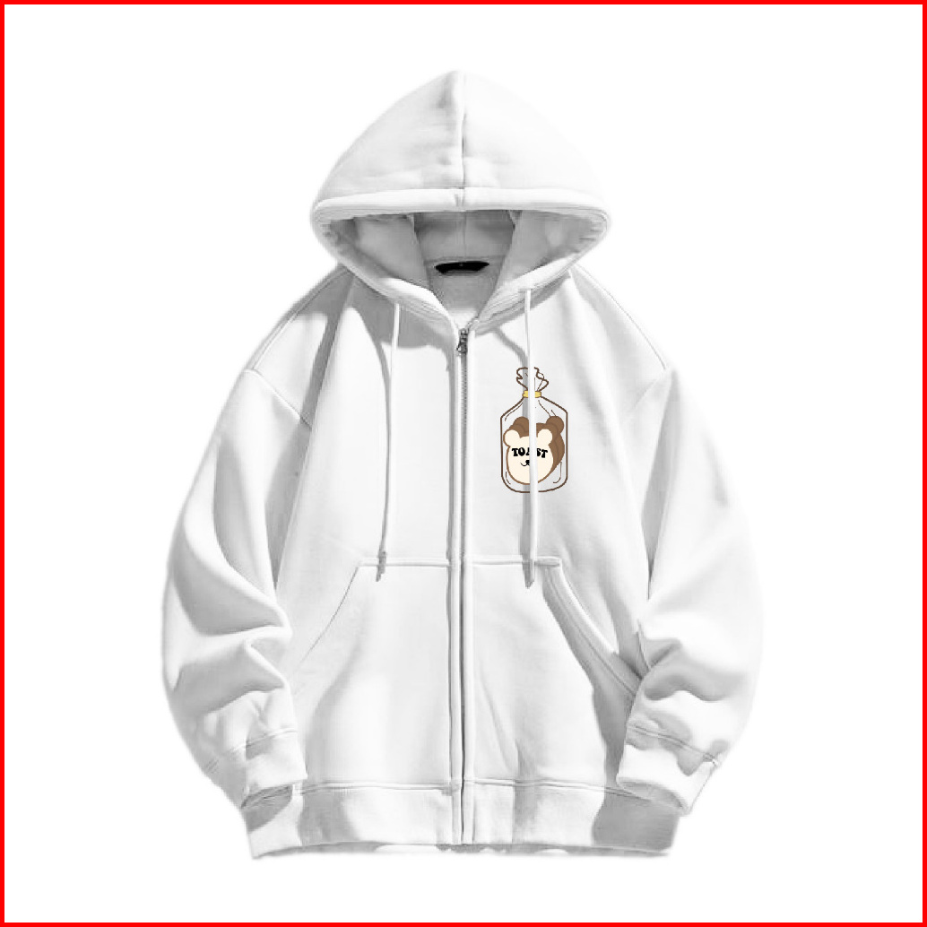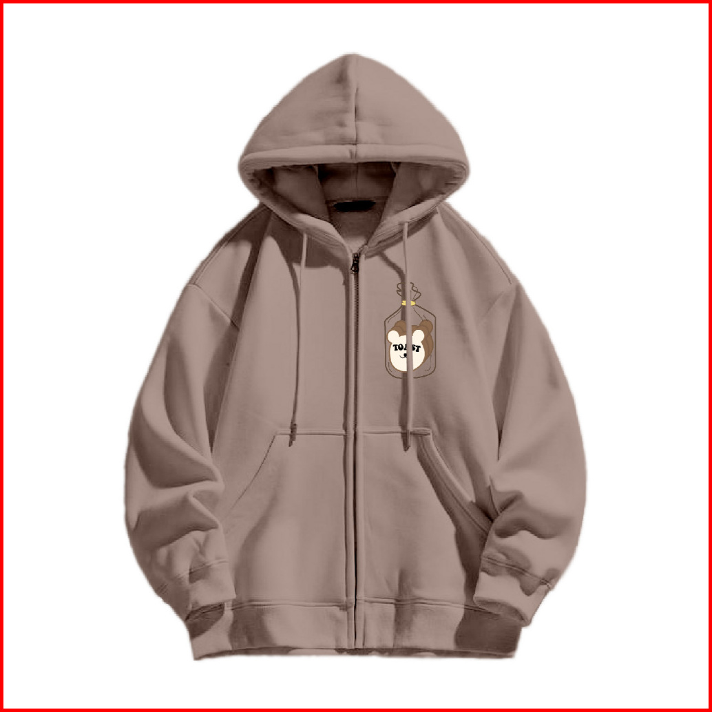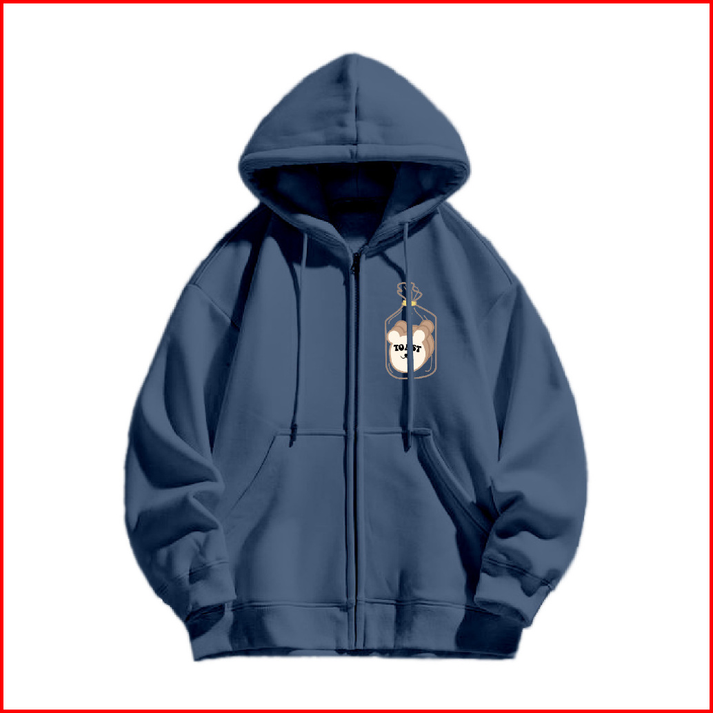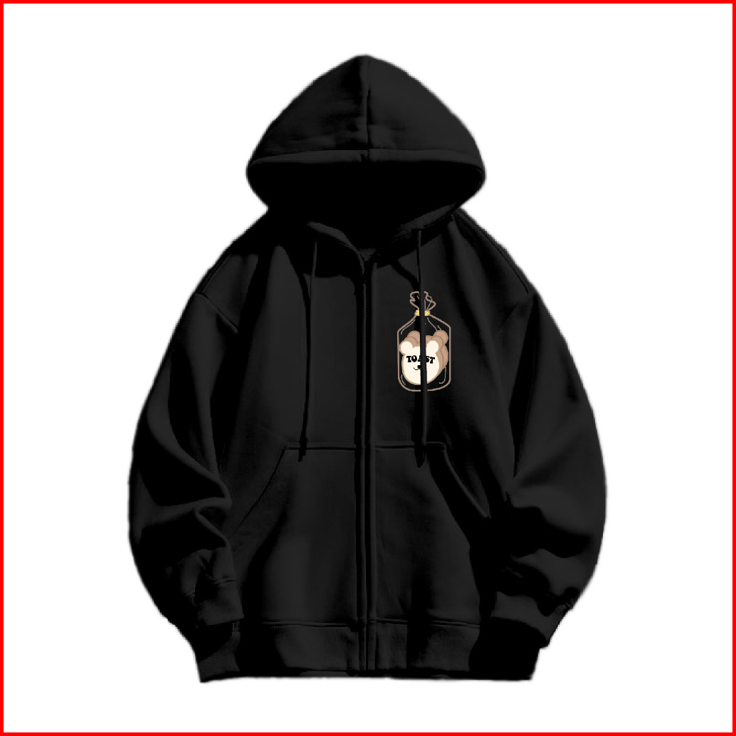 Jungji Hoodie Zipper Toast Sablon Size M-xxl Pria Wanita