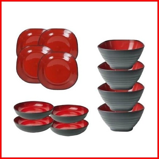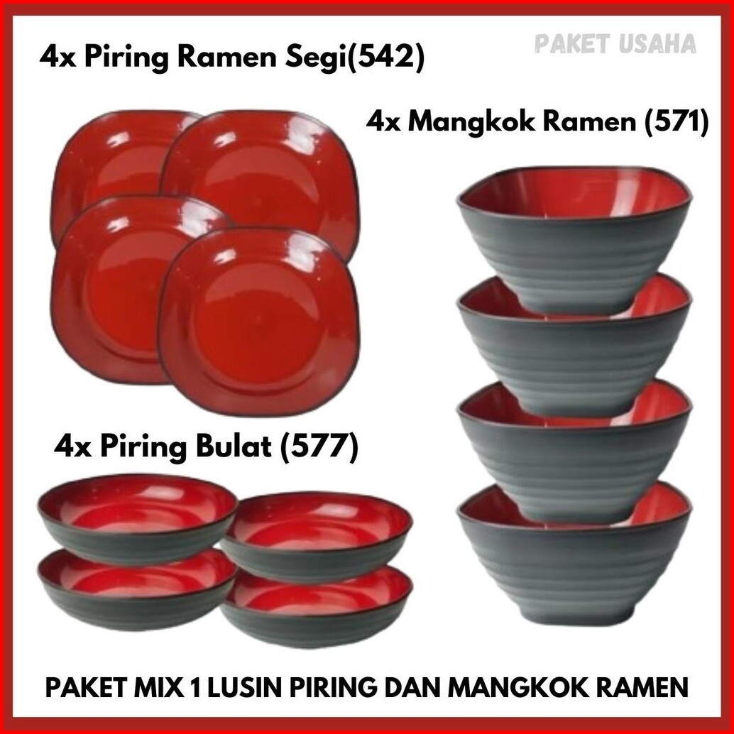 Paket 1 Lusin Ramen Piring Mix Dan Mangkuk Kotak - Kitchenware Piring Set Mangkok