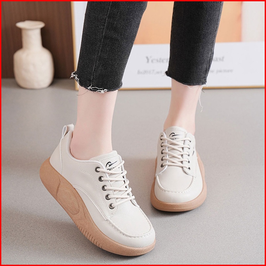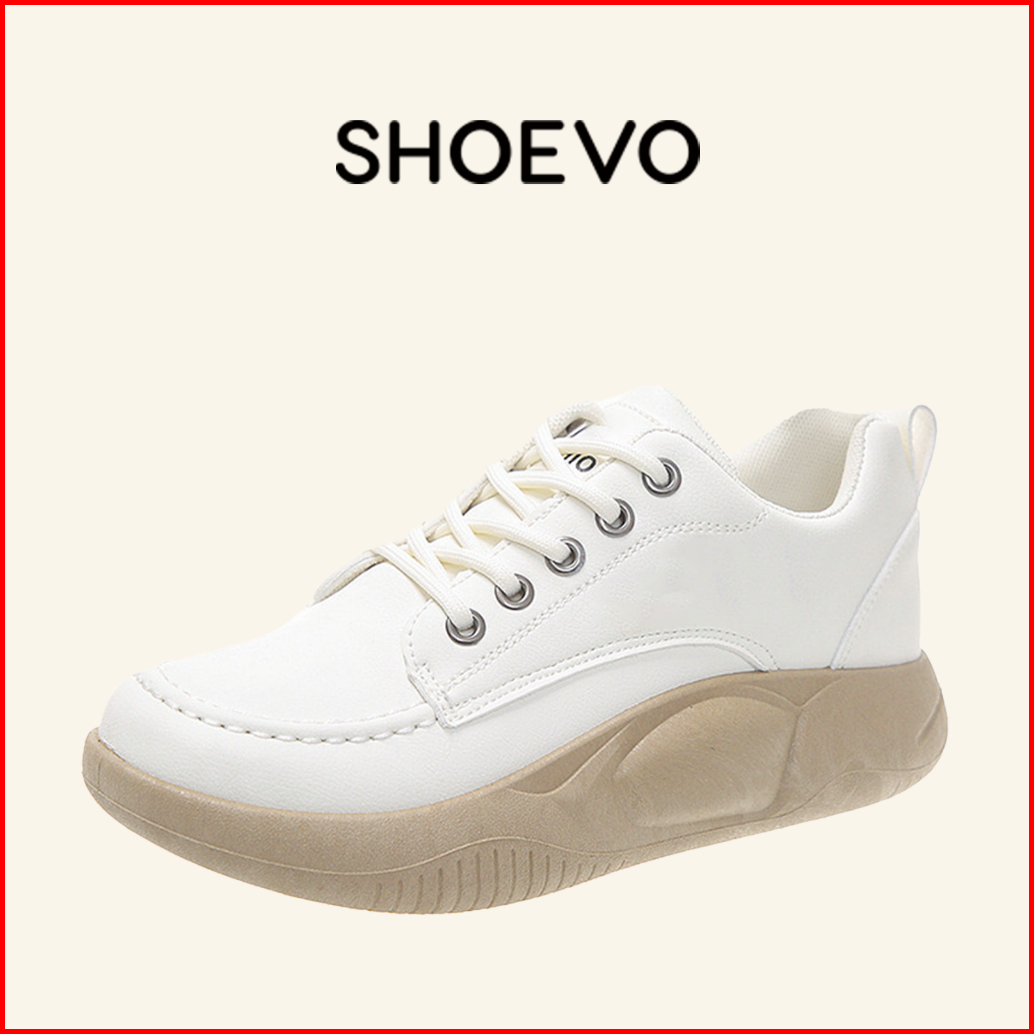 Shoevo Sepatu Wanita Outsole Lembut Tahan Aus Anti Slip Tinggi 3 5cm Krem Coklat St054