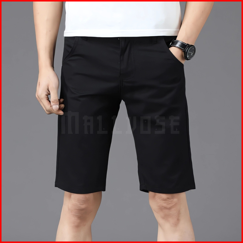 Mallvose - Celana Pria Pendek Chino Black Premium