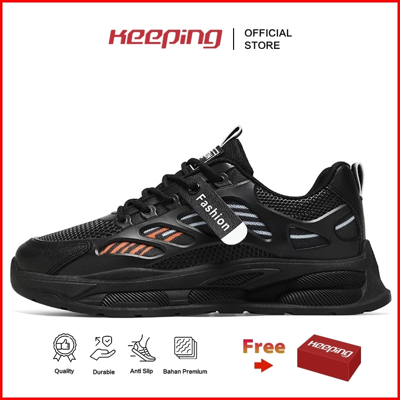 Keeping Sepatu Sneakers Pria Hitam Sepatu Olahraga Lari Original Casual Sepatu Kerja Kekinian Ksr726