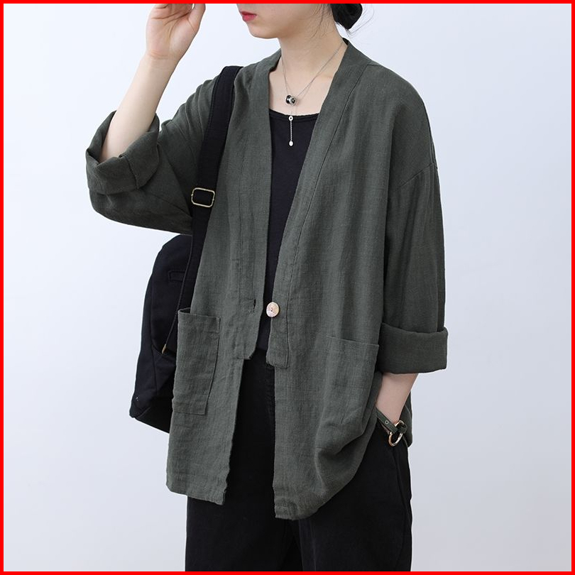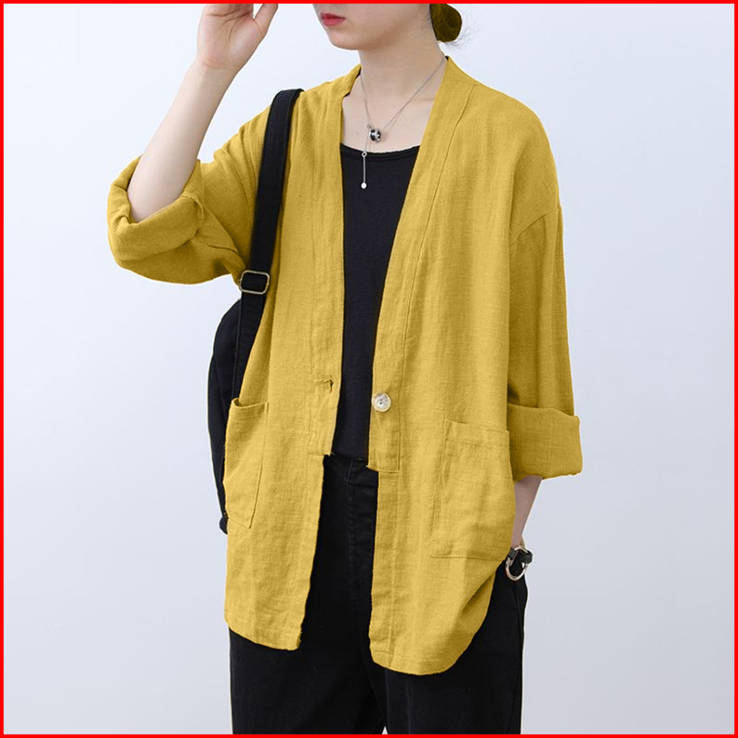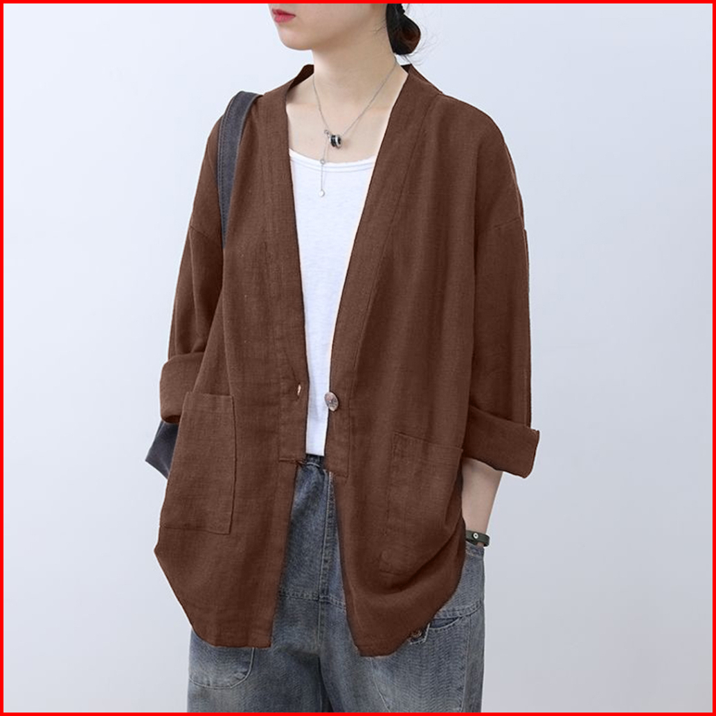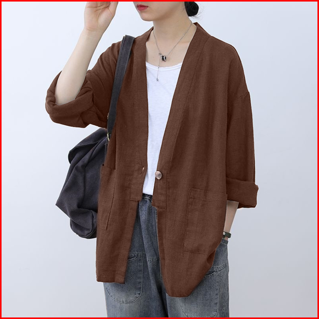 Samantha Blazer Linen Wanita Oversize Model Korean Style Casual Modis Kekinian Stylish Nyaman