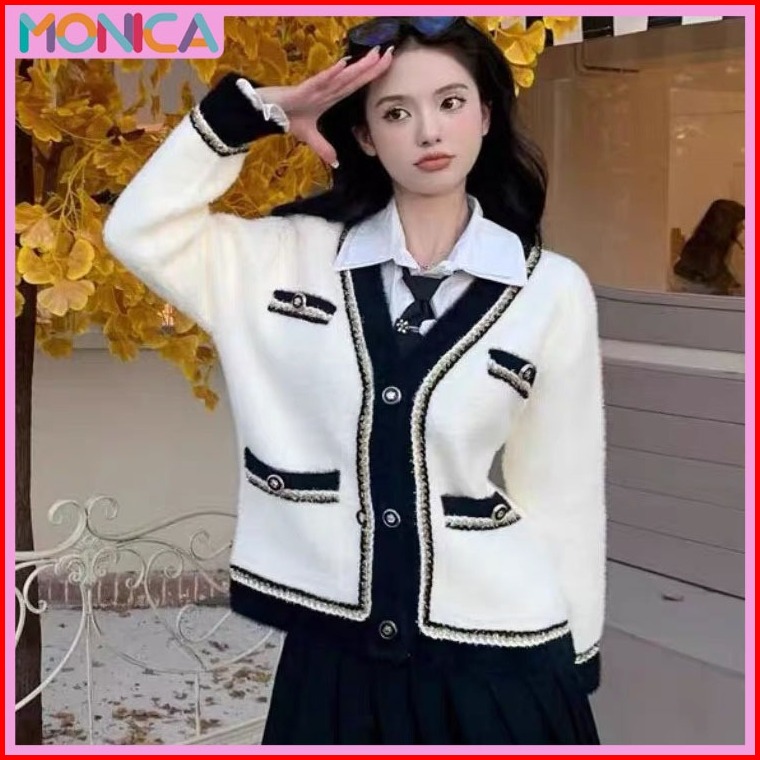 Monica Blazer Cardigan Elegant Classy Bulu Bkk Polos Halus Knitwear Santai Wol Outer