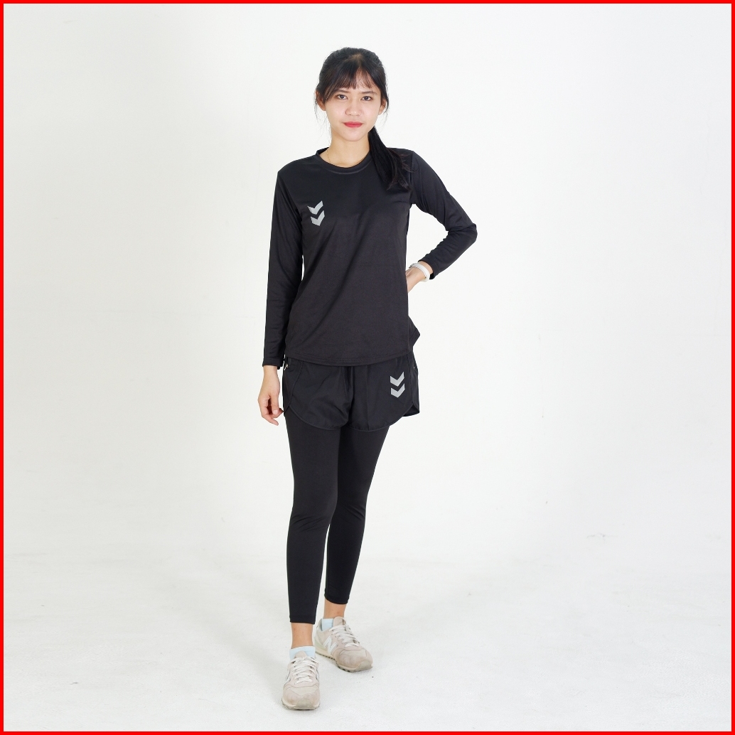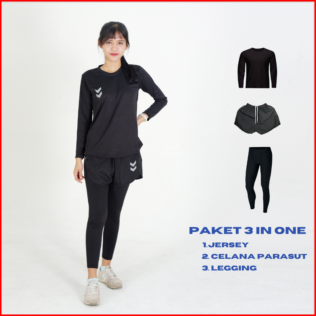 Setelan Paket 3 In One Jersey Baju Set Olahraga Wanita Celana Parasut Legging Sport Panjang