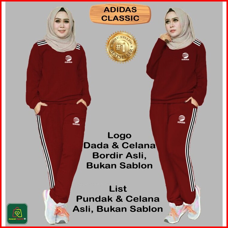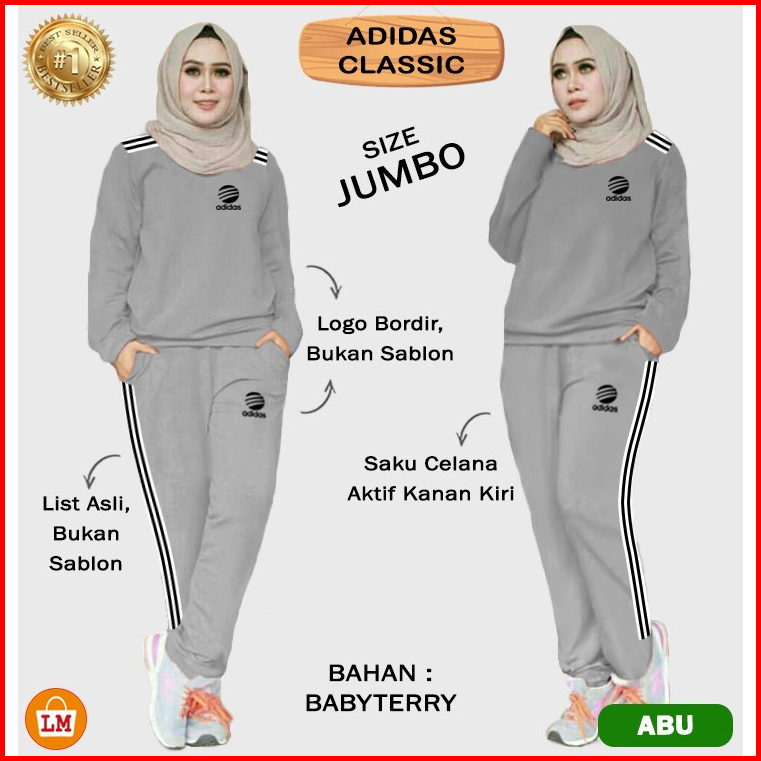 Setelan Kaos Olahraga Senam Adds Classic Babyterry Training Wanita Babyterry Big Size Oversize Jumbo Xl - Xxxl 18158-181