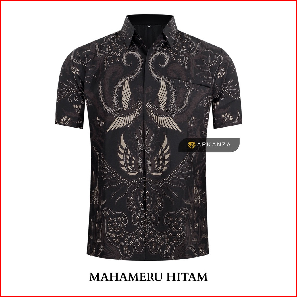 Batik Arkanza Motif Mahameru Hitam Hem Atasan Kemeja Baju Batik Pria Cowok Laki Laki Slimfit Full Lapis Furing Lengan Pa