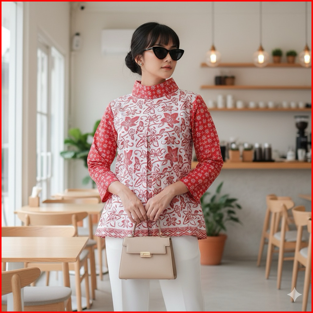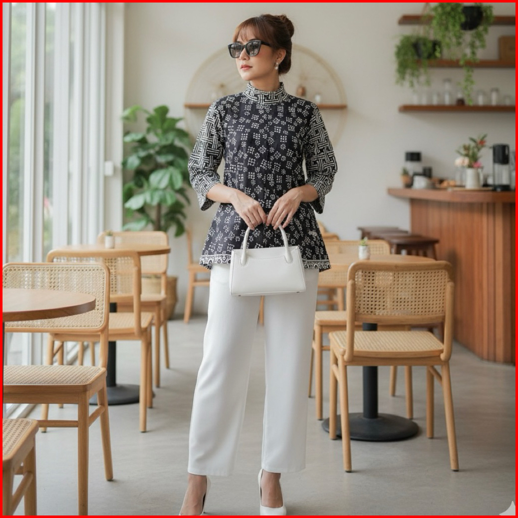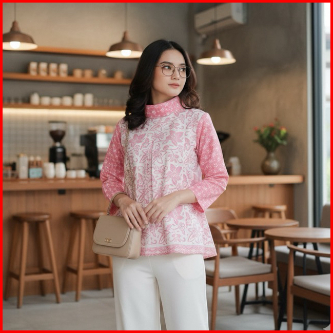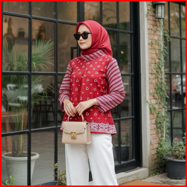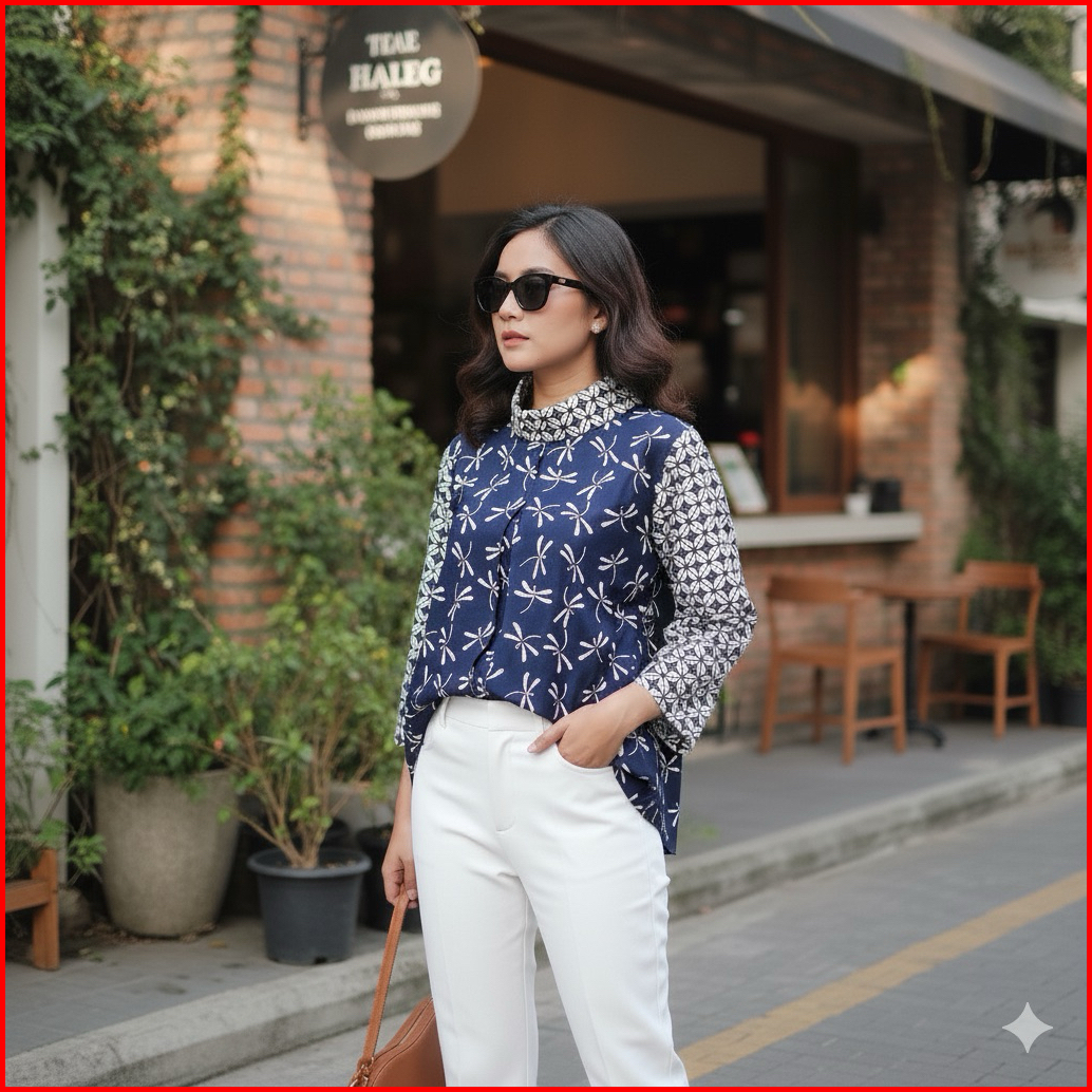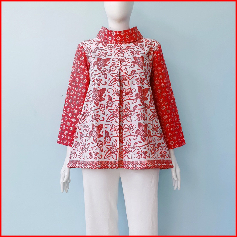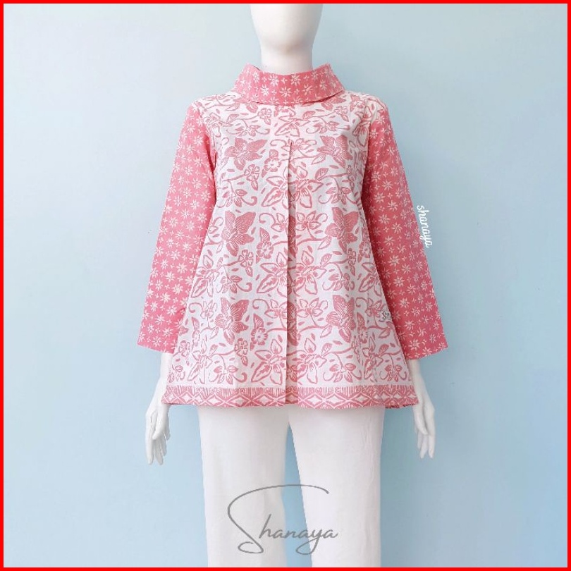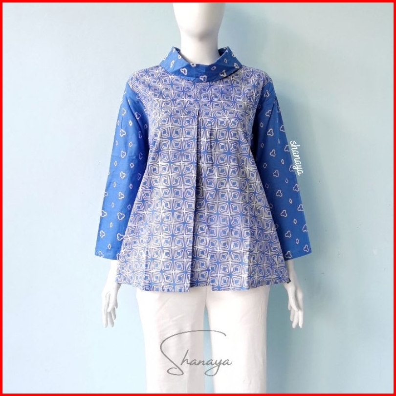 Blus Gipsy Shanaya Baju Batik Wanita Blus Batik Cap Garutan Navy Biru Hijau Seragam Atasan Wanita