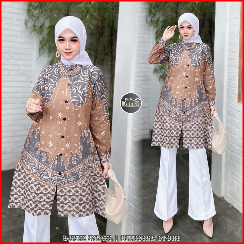 Tunik Batik Wanita Modern Atasan Fashion Muslim Wanita Busui Friendly Baju Batik Wanita Terbaru