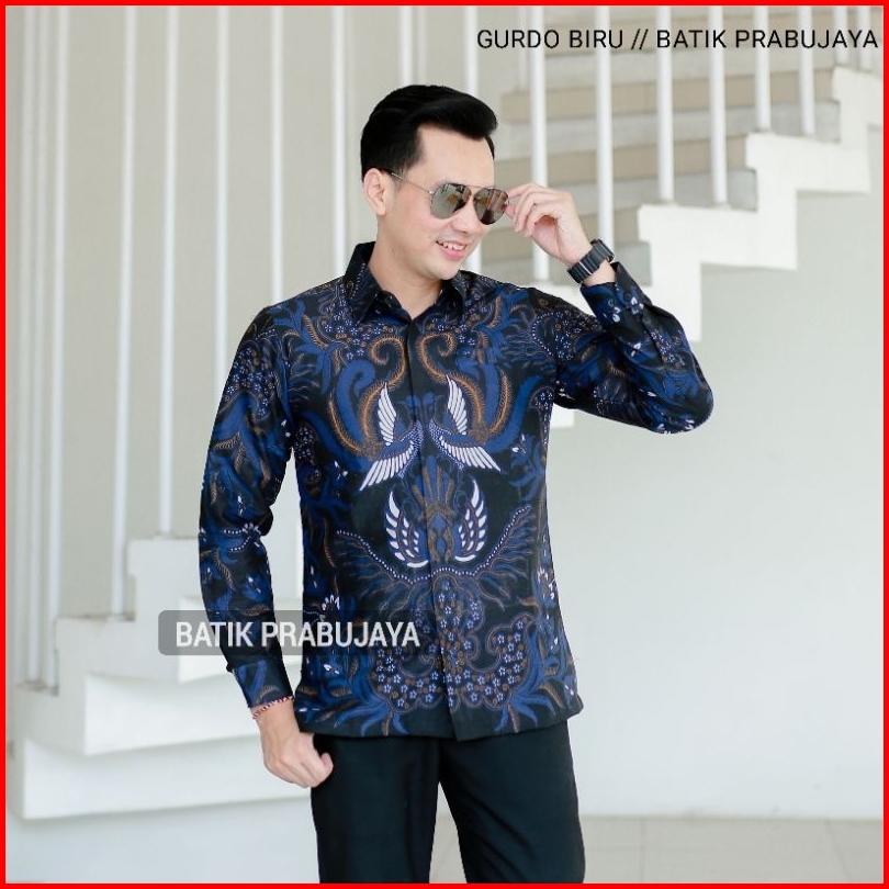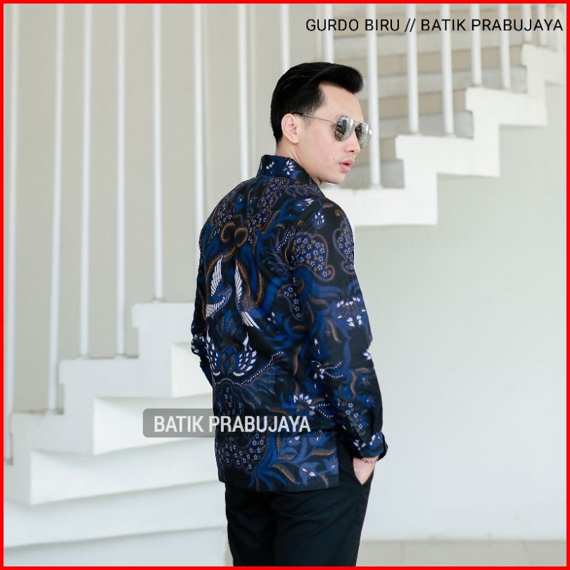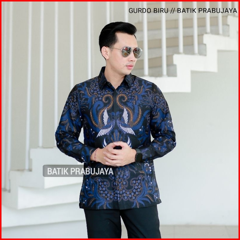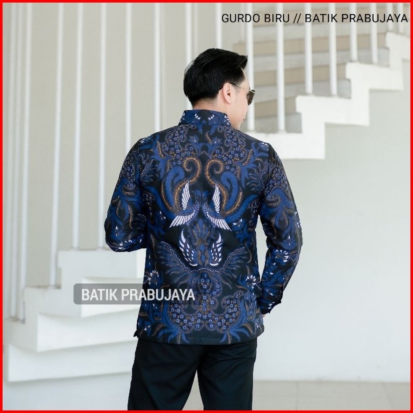 Gurdo Biru Kemeja Baju Batik Pria Lengan Panjang Modern Premium Full Furing Katun Halus